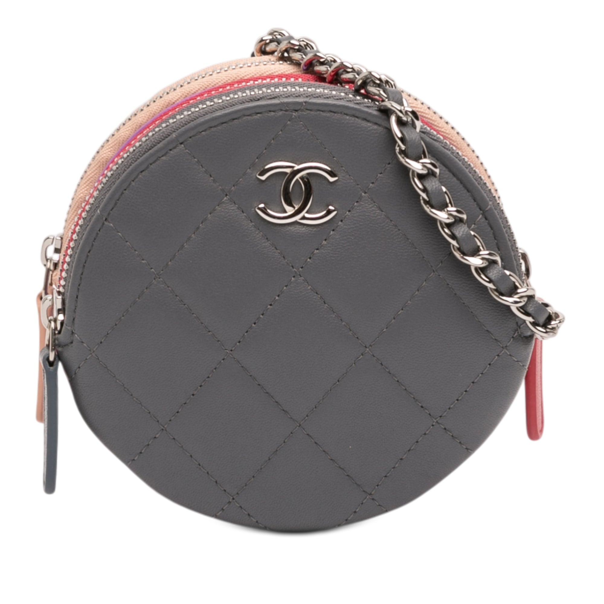 CC Quilted Lambskin Triple Zip Round Clutch With Chain