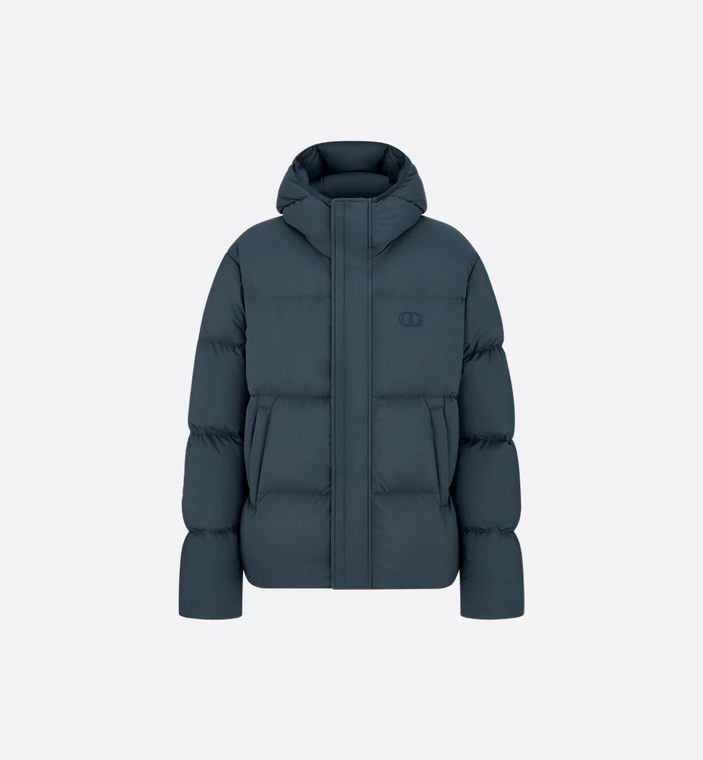 Elevate your cold-weather wardrobe with this luxurious Dior "CD Icon" quilted hooded down jacket in a sophisticated slate blue hue. This premium puffer features signature quilted construction filled with insulating down, ensuring both warmth and style during the cooler months.