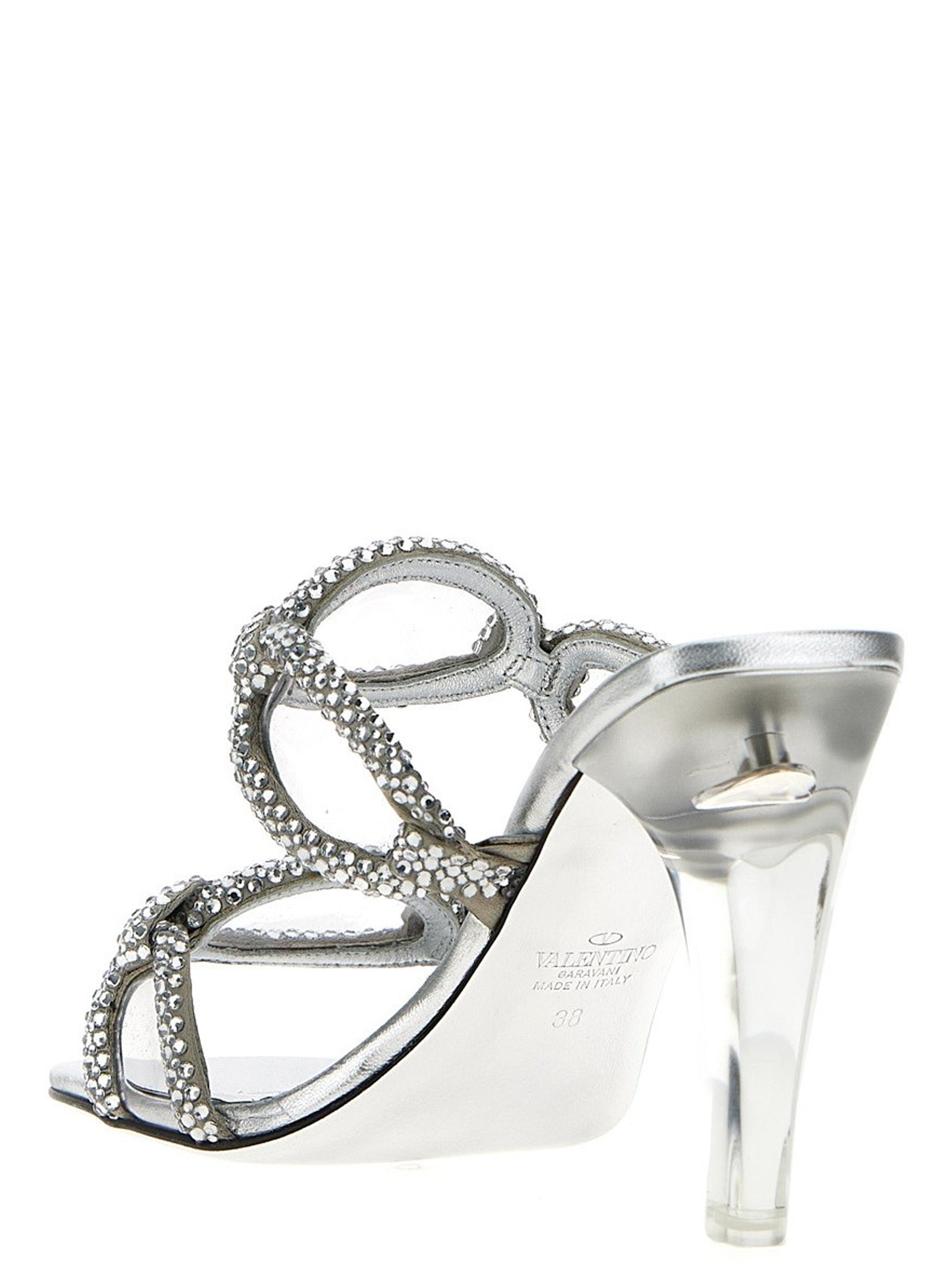 The transparent heel adds a modern, architectural element to this sophisticated design, creating an illusion of effortless height. Perfect for cocktail parties, wedding celebrations, or any special evening occasion, these sandals seamlessly blend contemporary glamour with timeless Italian craftsmanship.