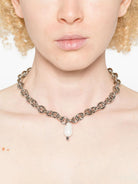 This stunning Simone Rocha chain necklace features an elegant combination of lustrous pearls and sparkling crystals in a sophisticated pendant design.