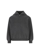 Elevate your everyday wardrobe with this luxurious Charcoal Wool Sweater from Balenciaga. Crafted from premium wool, this pullover features a sophisticated high collar with a half-zip closure, offering versatile styling options and modern edge.