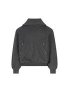 The relaxed, oversized silhouette and ribbed cuffs create an effortlessly chic look that pairs perfectly with everything from tailored trousers to your favorite denim. The rich charcoal hue makes this piece a timeless wardrobe essential that transitions seamlessly from season to season.