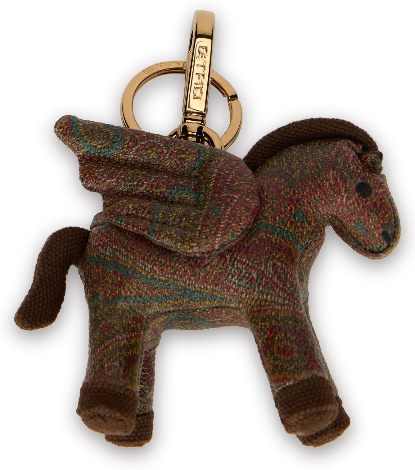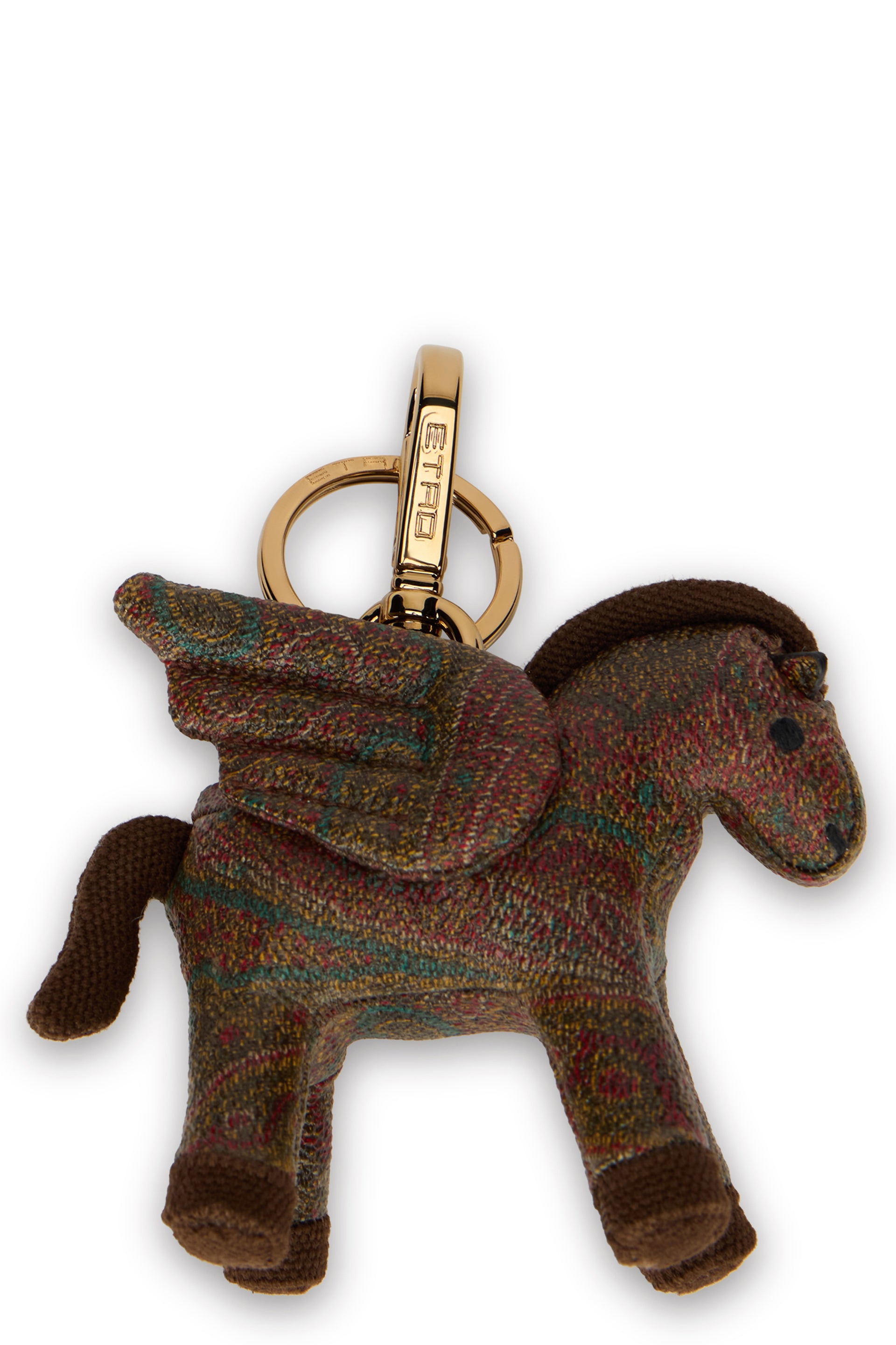 CHARM FOR BAGS ARNICA PEGASO IN JACQUARD WITH PAISLEY PATTERN, MADE OF HIGH-QUALITY MATERIAL. INCLUDES A STURDY METAL KEYRING, ALLOWING FOR EASY USE. IDEAL FOR ADDING AN ORIGINAL TOUCH TO KEYS, BAGS, OR BACKPACKS. HEIGHT: 11 CM WIDTH: 9 CM