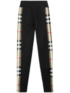 BLACK STRETCH-JERSEY VINTAGE CHECK PATTERN CONTRASTING PANEL DETAIL ELASTICATED WAISTBAND