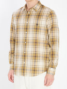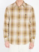 COTTON TWILL SHIRT WITH A BEIGE AND BROWN CHECKED PATTERN. FEATURING A POINTED COLLAR, FRONT BUTTON CLOSURE, LONG SLEEVES, BUTTONED CUFFS, CHEST POCKET WITH EMBROIDERED TRIOMPHE LOGO, AND A ROUNDED HEM. REGULAR FIT.