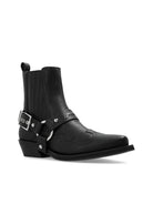 BLACK FAUX LEATHER WESTERN STYLE SLIP-ON STYLE PULL-TAB AT THE HEEL ELASTICATED SIDE PANELS SILVER-TONE BUCKLE FASTENING EMBROIDERED DESIGN POINTED TOE LOW BLOCK HEEL BRANDED INSOLE RUBBER SOLE ANKLE-LENGTH WE'VE PARTNERED WITH GOOD ON YOU — AN INDEPENDENT AGENCY THAT RATES HOW BRANDS PERFORM IN RELATION TO THEIR IMPACT ON THE PLANET, PEOPLE AND ANIMALS, WITH A MULTI-CRITERIA RATING SIMPLIFIED TO A FIVE POINTS SCALE. IN ORDER TO BE AWARDED OUR CONSCIOUS LABEL, LARGER BRANDS NEED TO SCORE A MINIMUM OF FOUR OUT OF FIVE ('GOOD'), WHILE SMALLER BRANDS MUST SCORE AT LEAST THREE OUT OF FIVE ('IT'S A START'). THIS ITEM COMES FROM A BRAND RATED THREE OUT OF FIVE ('IT'S A START') BY GOOD ON YOU AT THE TIME IT WAS ADDED ON FARFETCH. PLEASE NOTE, THIS IS A BRAND-LEVEL RATING AND DOES NOT GUARANTEE THAT THIS PRODUCT IS MADE WITH CONSCIOUS MATERIALS. LEARN MORE ABOUT WHAT MAKES A PRODUCT CONSCIOUS ON OUR CONSCIOUS CRITERIA PAGE