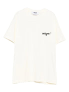 MSGM PINK COTTON CREW NECK T-SHIRT WITH CHEST LOGO WOMEN'S TOPS AND JERSEY SHIRTS