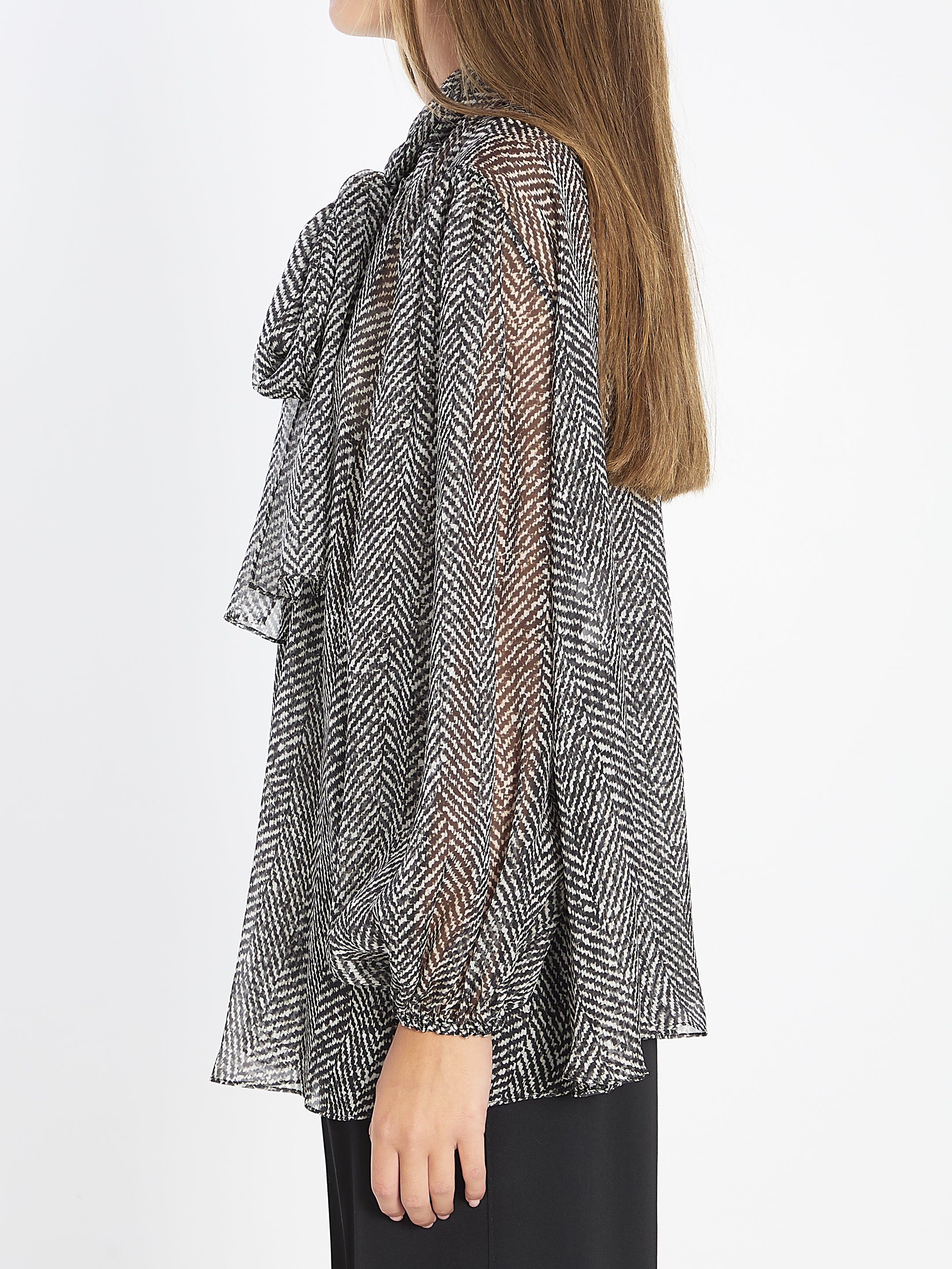 CHEVRON-PRINT SILK CHIFFON SHIRT