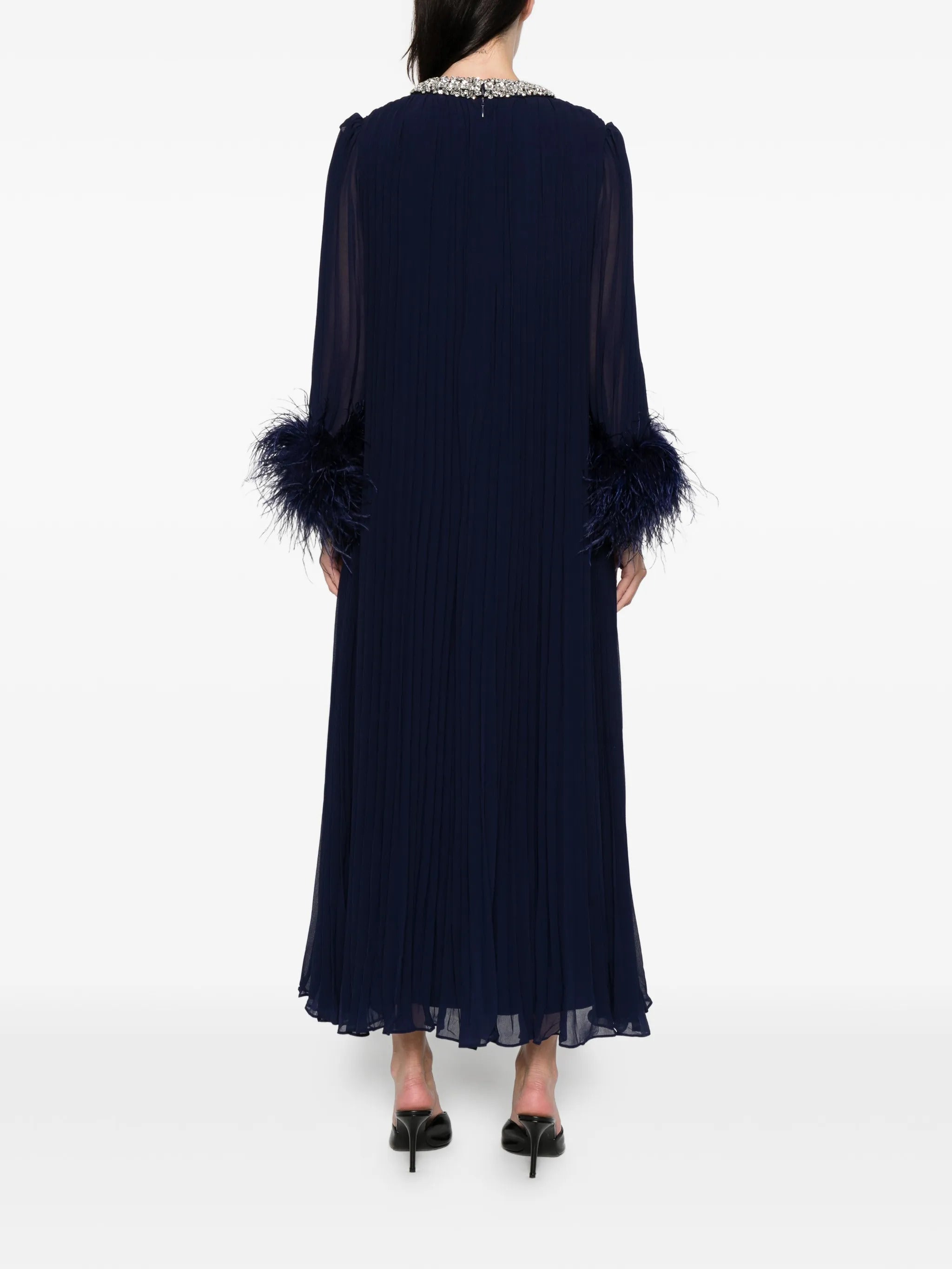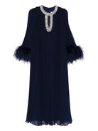 Elevate your evening wardrobe with this exquisite Self-Portrait Chiffon Feather Midi Dress. Crafted from luxuriously pleated chiffon, this sophisticated piece features stunning rhinestone embellishments adorning the neckline for a touch of glamorous sparkle.