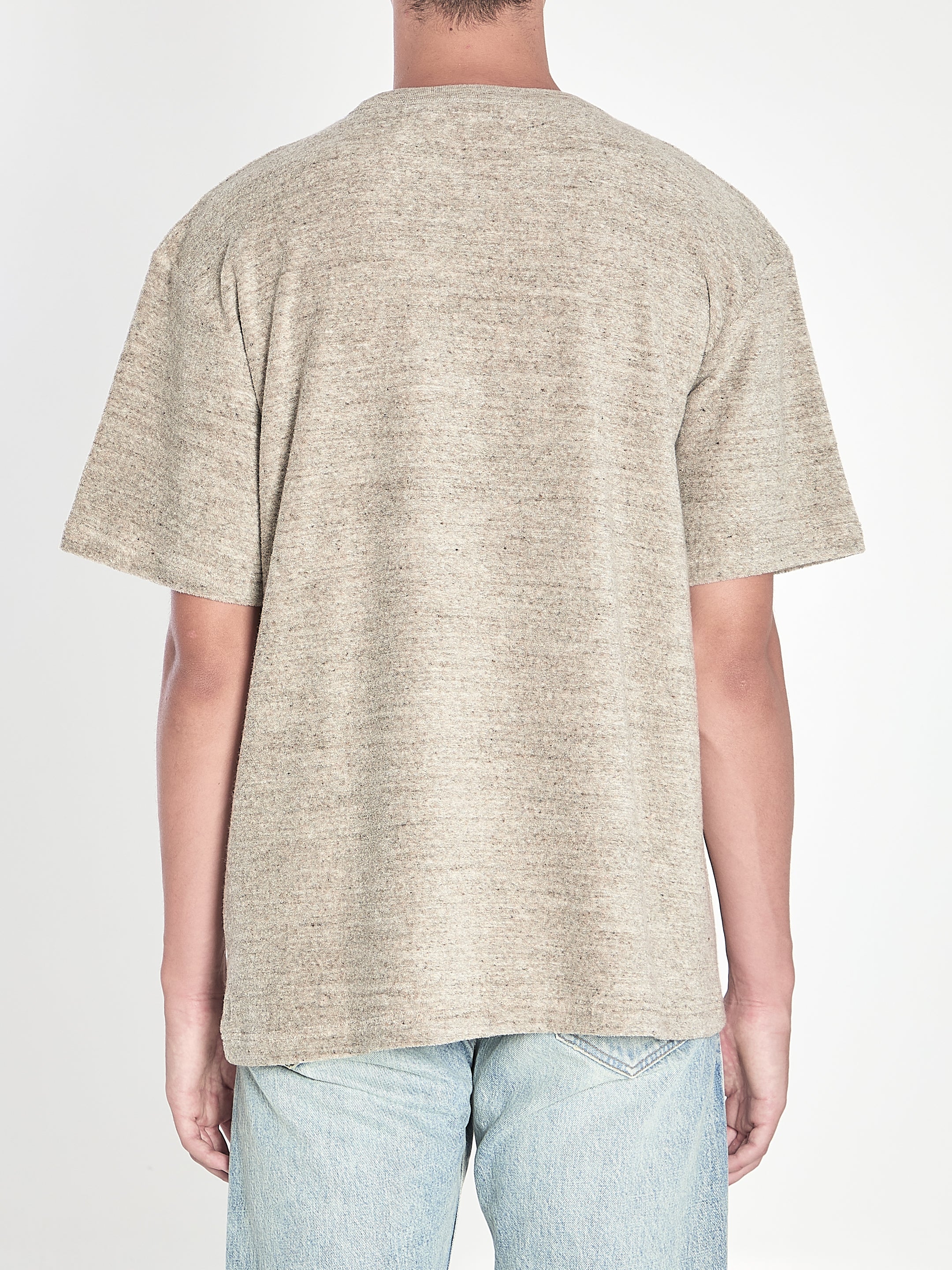 BEIGE COTTON TERRY T-SHIRT. FEATURES A RIBBED CREWNECK, SHORT SLEEVES, AND CONTRASTING CHRISTIAN DIOR COUTURE EMBROIDERY ON THE CHEST. RELAXED FIT.