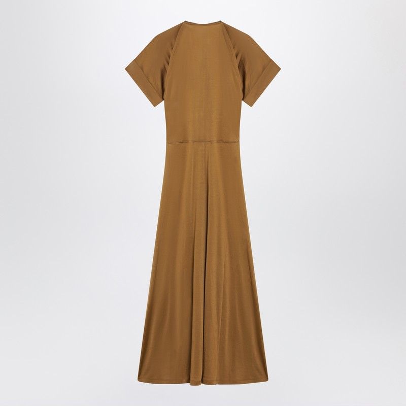 Elevate your everyday wardrobe with this stunning cinnamon brown zip-up dress from Lemaire. Crafted from a luxurious cotton and viscose jersey blend, this long maxi dress features a distinctive double front zip closure that adds modern edge to the fitted silhouette.
