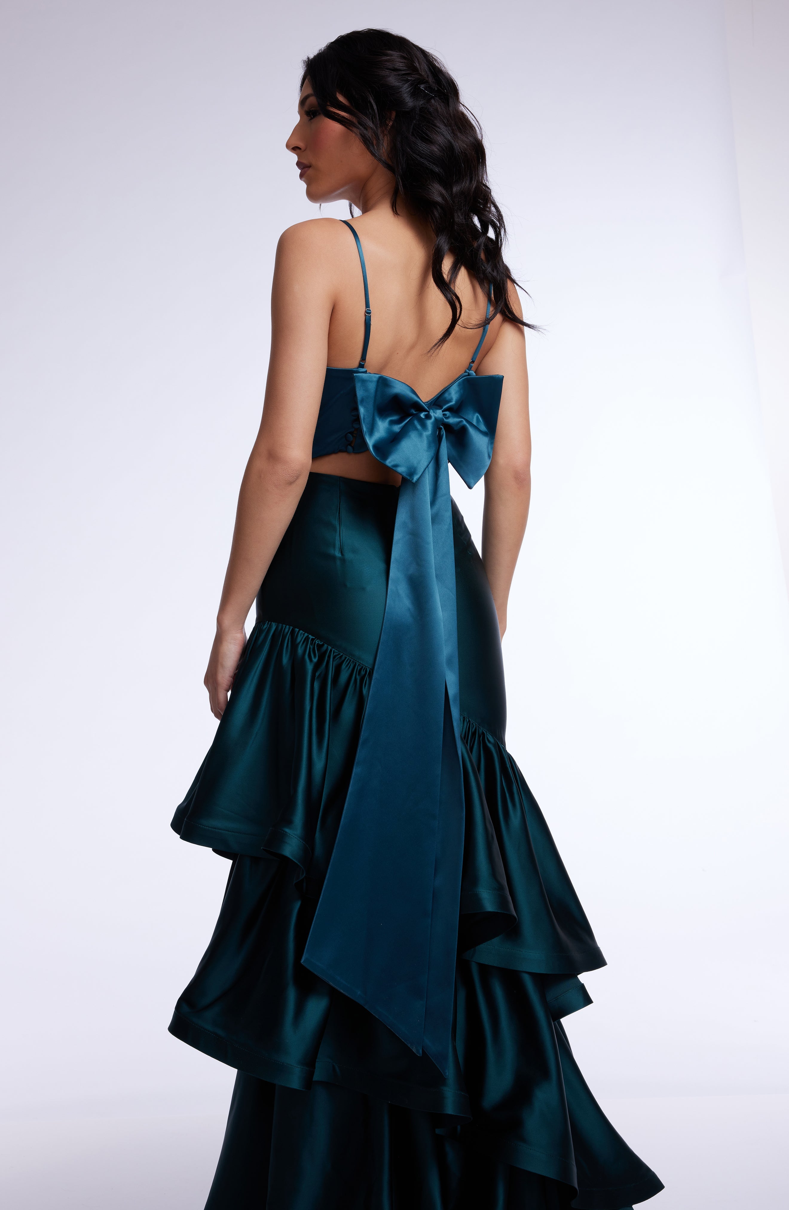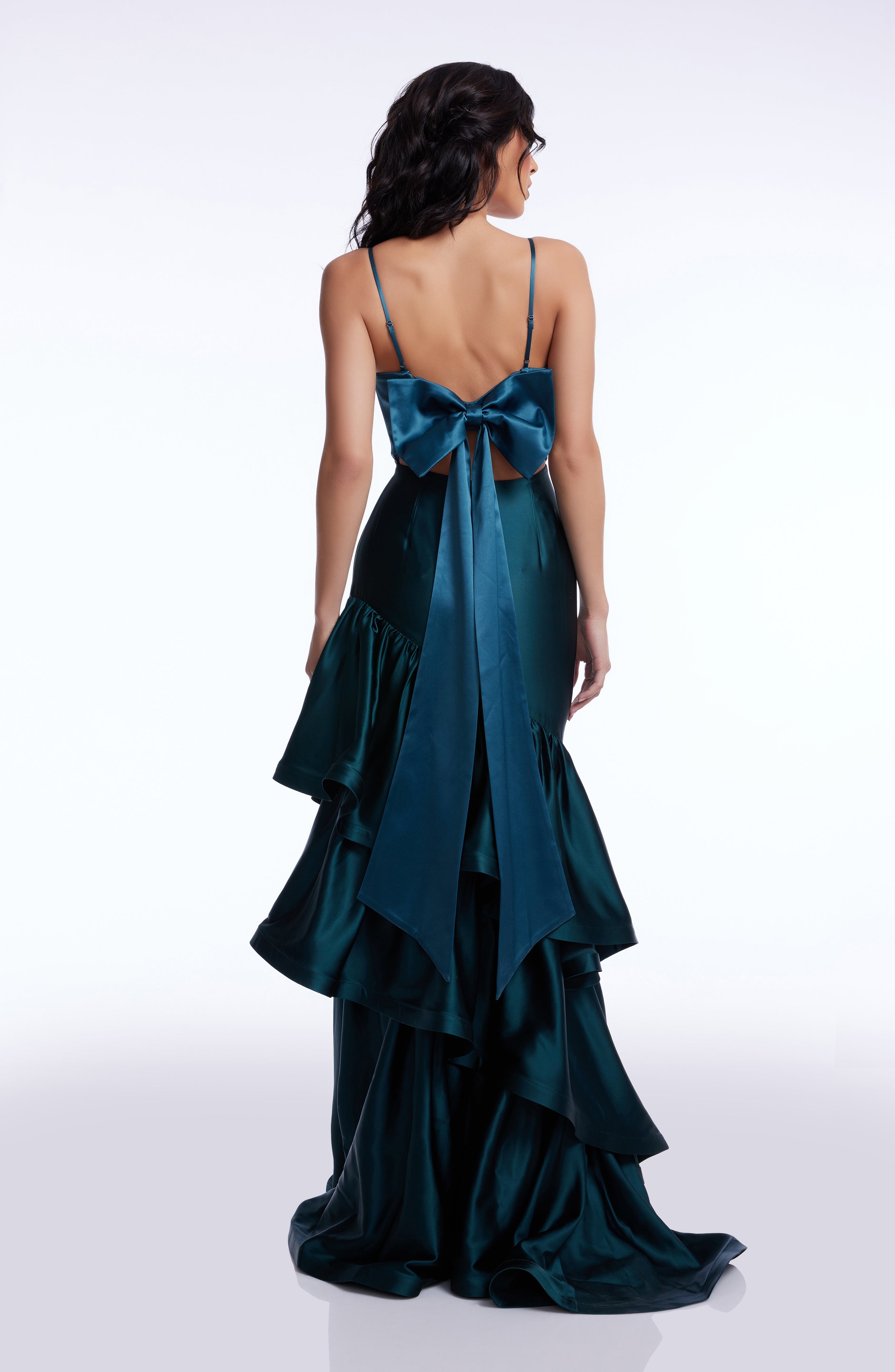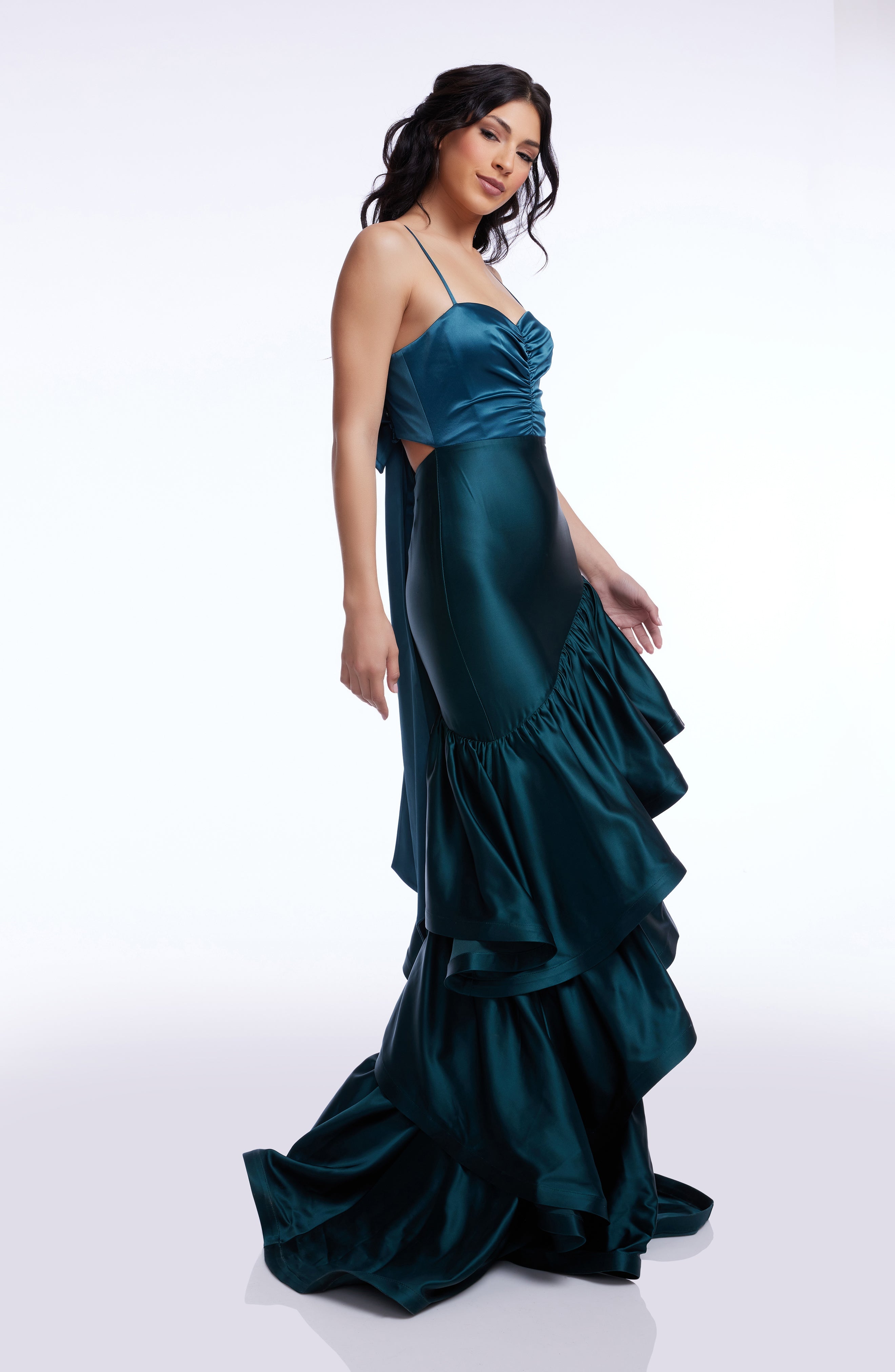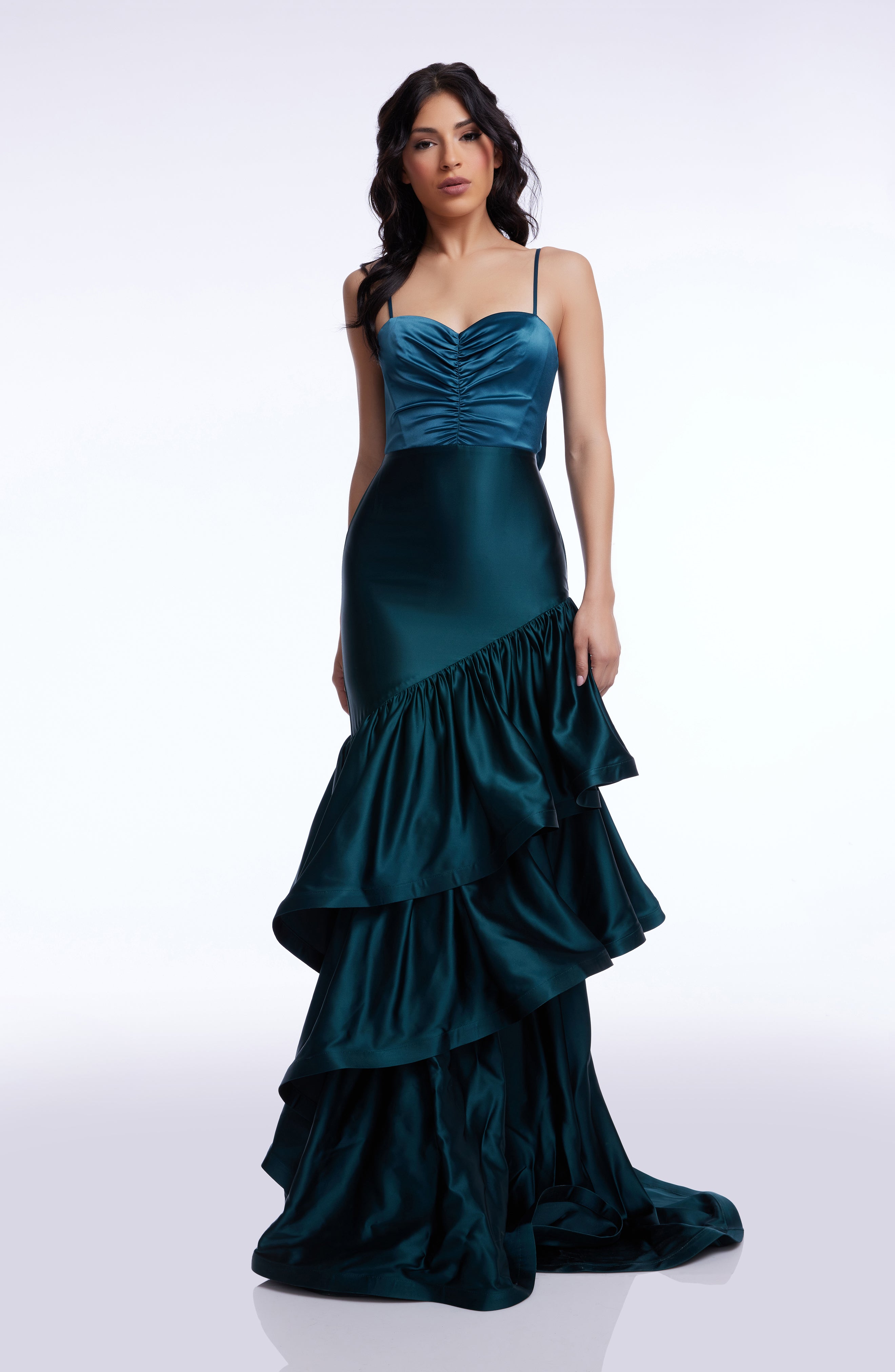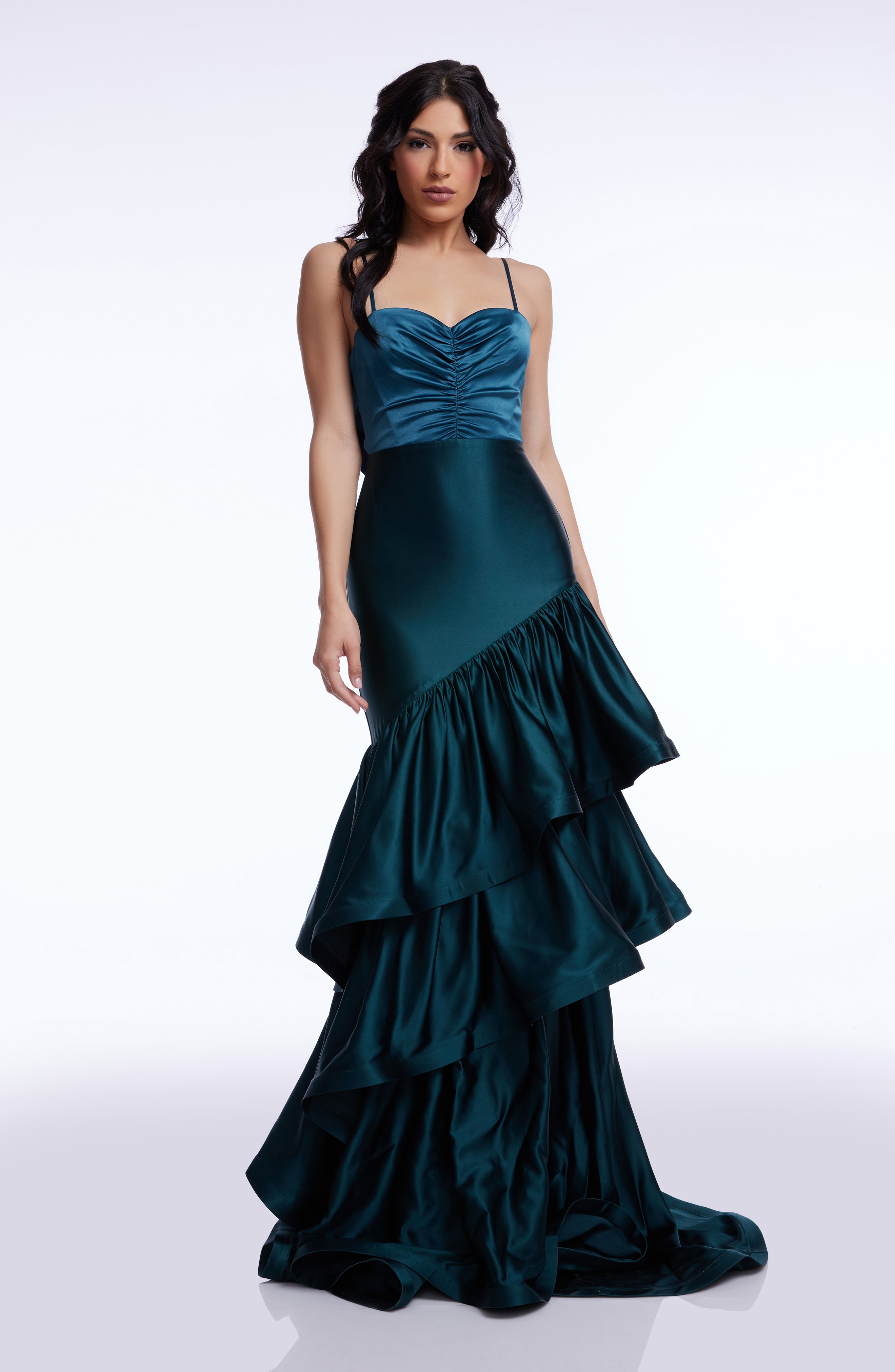 The Clarice Dress boasts a timeless sweetheart neckline, sleeveless design, and a dramatic mermaid silhouette with a layered full-length skirt. Crafted from premium materials, it elegantly contours your figure while providing a stunning, flowing look. Perfect for formal events, this dress is a must-have for making a memorable entrance.