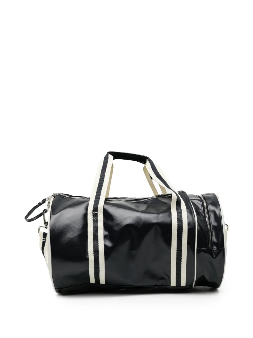 Elevate your athletic and travel style with the Fred Perry Classic Barrel Bag. This iconic duffel features a sleek black design with signature contrast white striping along the handles and adjustable shoulder strap, embodying the brand's timeless sporty aesthetic.