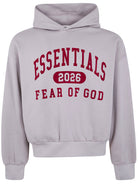 Elevate your off-duty wardrobe with this classic pullover hoodie from FEAR OF GOD ESSENTIALS. Crafted from a comfortable cotton-blend fabric (80% cotton, 20% polyester), this relaxed-fit hoodie features bold collegiate-style branding across the chest in striking red lettering.