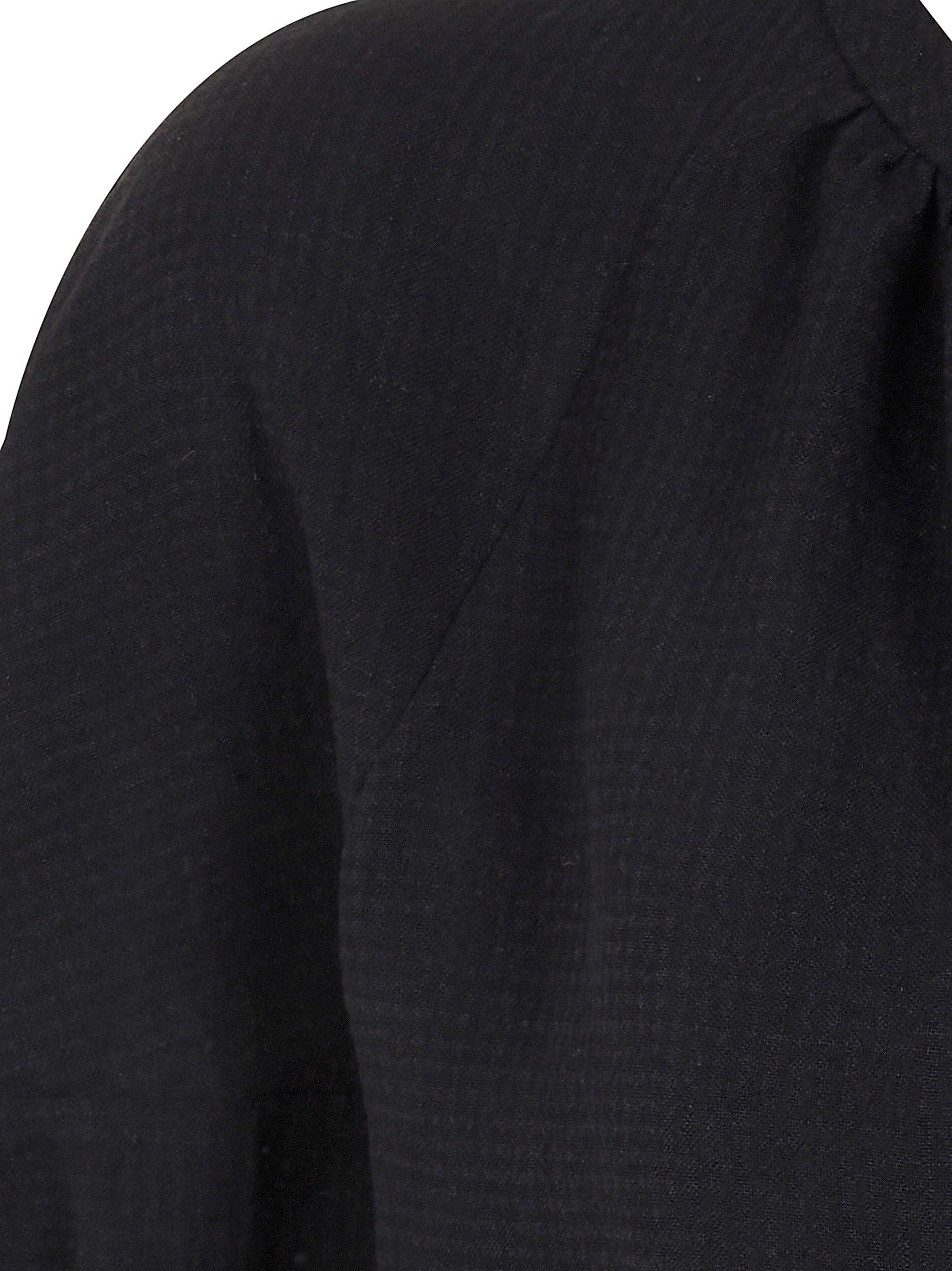 Elevate your everyday wardrobe with this Classic Shirt from Mantu. Crafted from a luxurious blend of viscose and linen, this elegant black blouse features a sophisticated gathered neckline with delicate tie detail and flattering 3/4 sleeves.