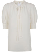Elevate your everyday wardrobe with this classic shirt from Mantu. Crafted from a luxurious blend of viscose and linen, this elegant blouse features charming puffed short sleeves and a feminine tie-neck detail that adds a touch of sophistication to any outfit.