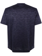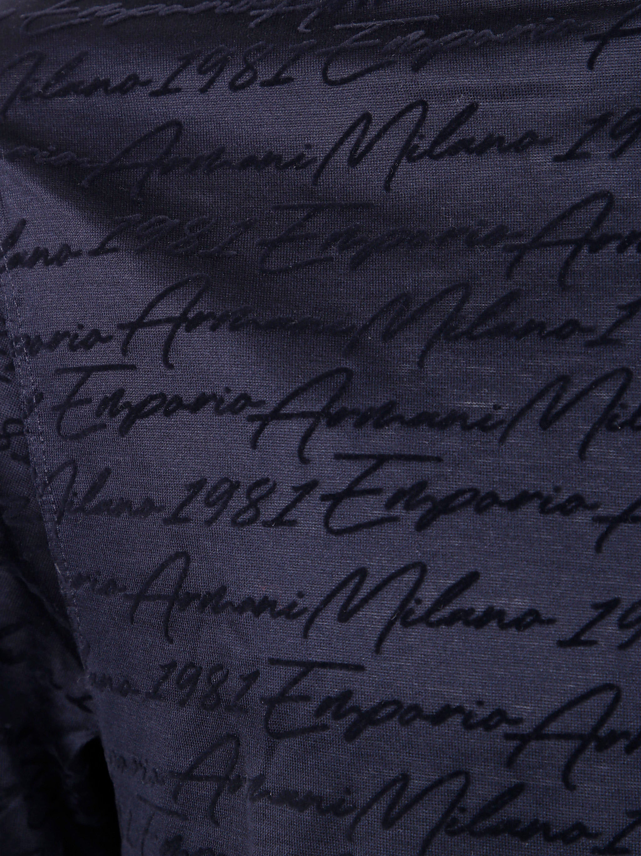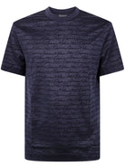 This Emporio Armani classic short sleeve t-shirt features an elegant all-over script pattern in a sophisticated navy tone.