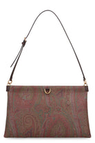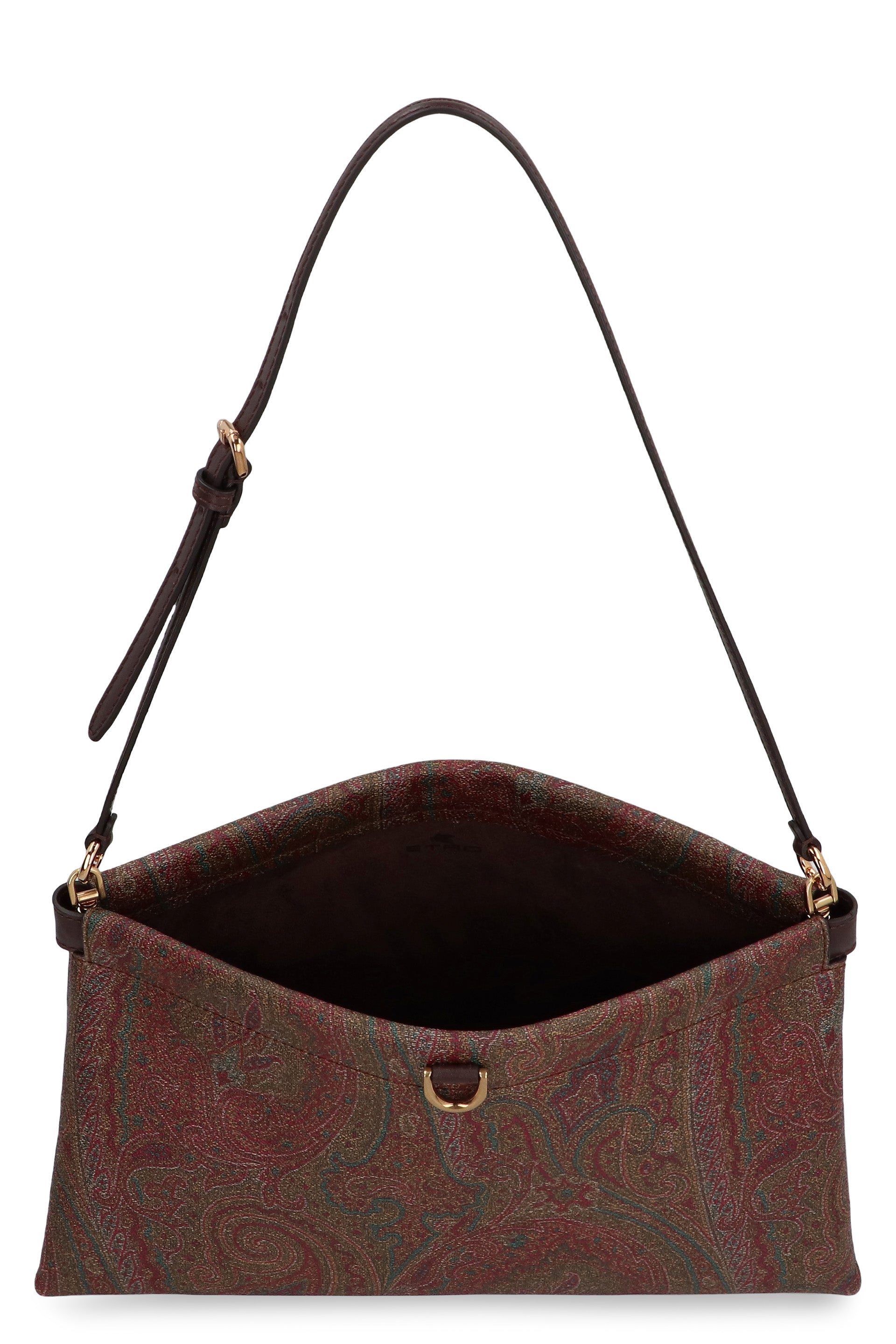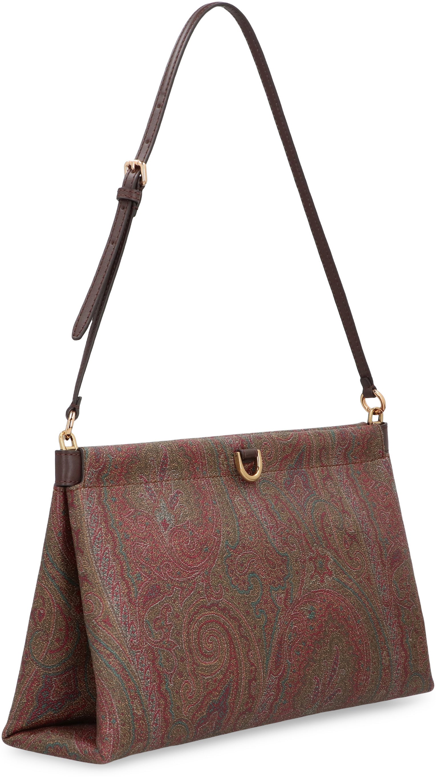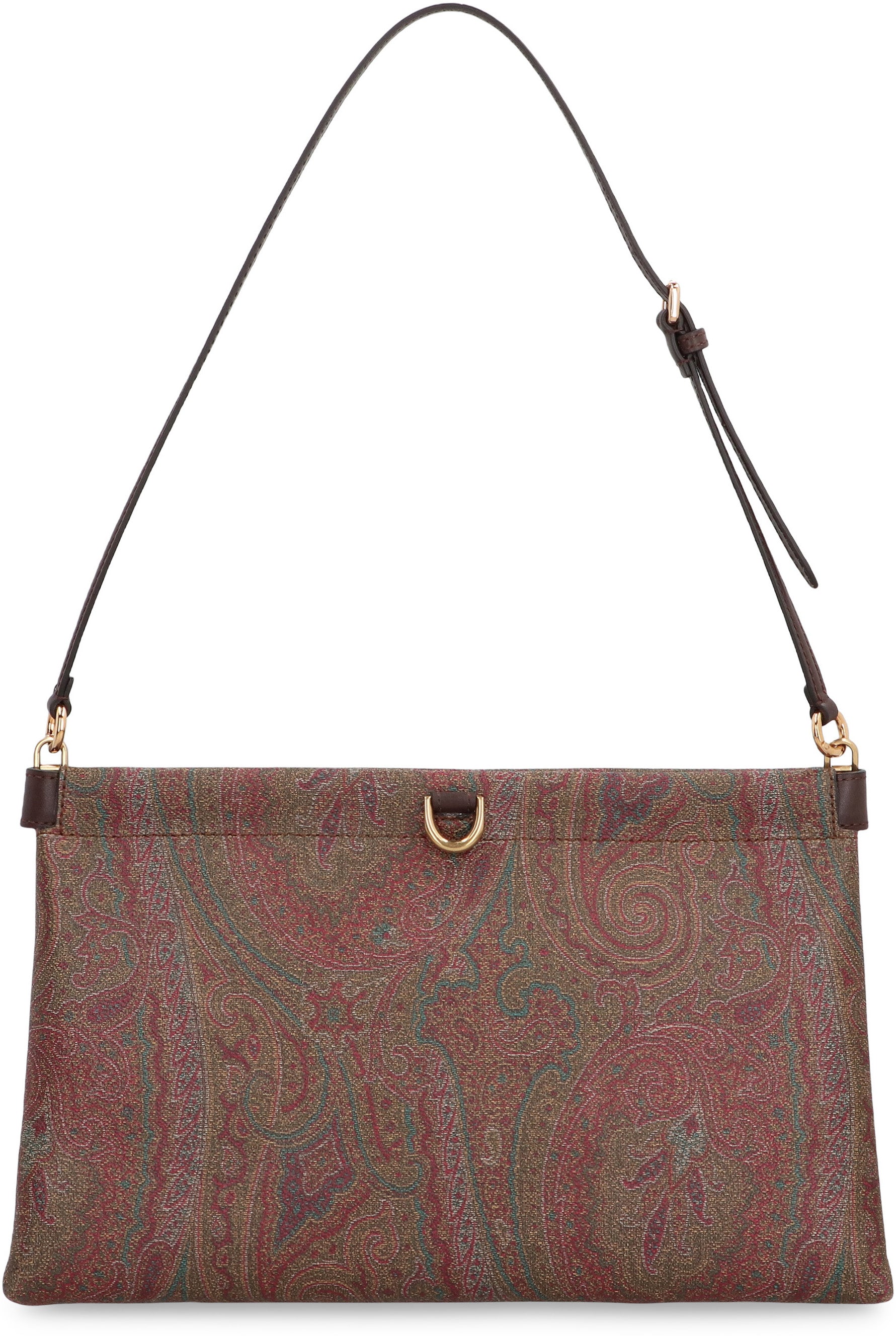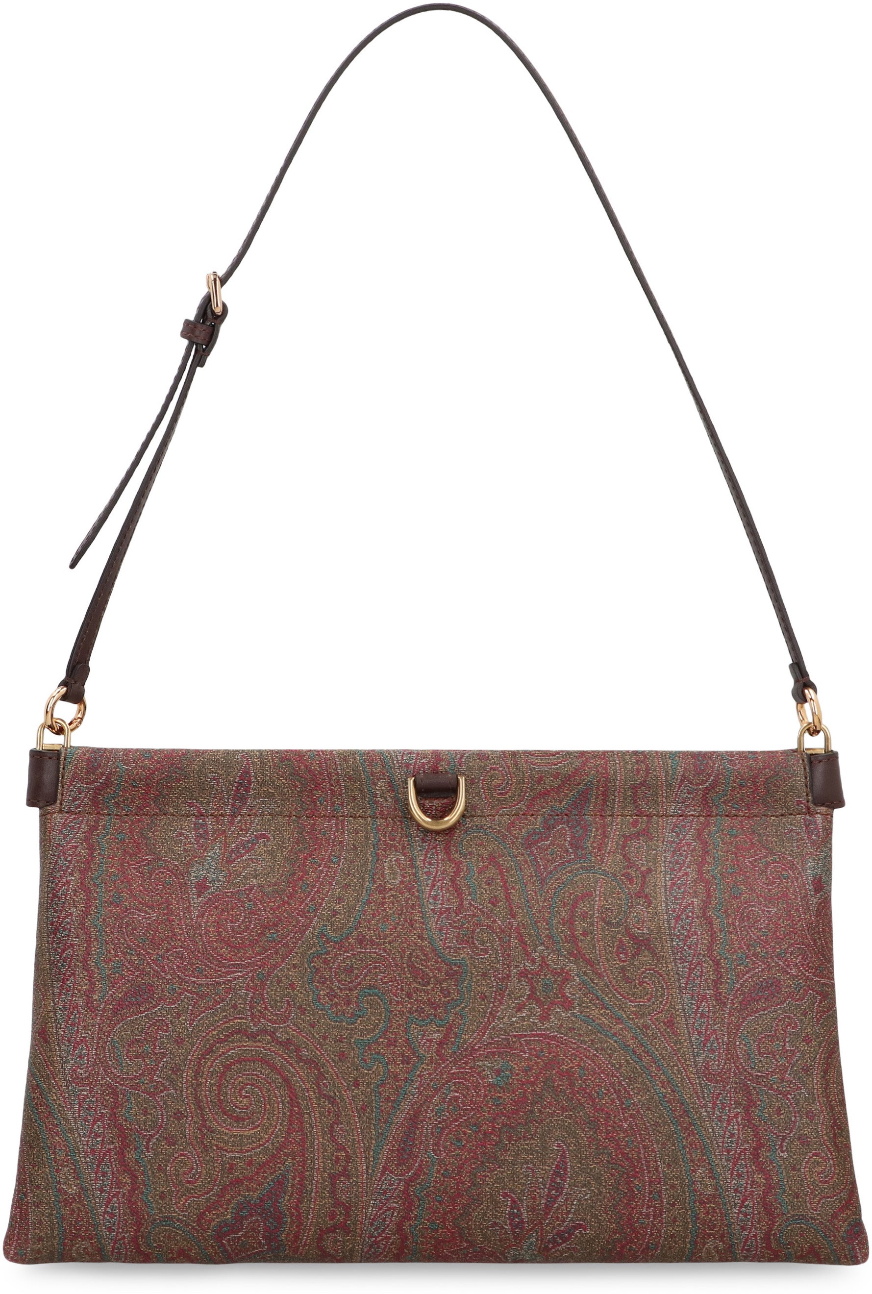 CLUTCH TALK MEDIA MADE IN THE ICONIC JACQUARD FABRIC WITH PAISLEY PATTERN. MODEL EQUIPPED WITH A MAGNETIC TOP CLOSURE, OPENS VIA THE EXTERNAL METAL RINGS, AND A SLIM ADJUSTABLE SHOULDER STRAP FOR SHOULDER PORTABILITY. ADJUSTABLE SHOULDER STRAP AND METAL ACCESSORIES WITH A GOLD FINISH.