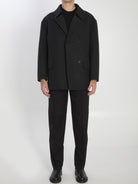 Elevate your outerwear collection with this sophisticated wool coat from Fendi. Crafted from 100% wool in Italy, this timeless piece features a classic shirt collar, long sleeves with dropped shoulders, and a refined double-breasted silhouette.