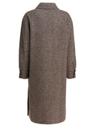 Brunello Cucinelli's diagonal virgin wool and silk mélange coat features a compact structure and straight, elongated silhouette. The fabric with oblique weave shows a wavy effect, the result of the mélange weave of yarns. Construction includes Thermore® padding and nylon lining, with double zipper and button closure. Large front flap pockets recall Saharan inspiration. Buttoned cuffs, slit bottom and monile detail complete the pattern.