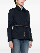 COTTON GABARDINE JACKET ENRICHED WITH A PATTERN FEATURING A LOGO AND ZIPPER. IT HAS A POINTED COLLAR, LONG SLEEVES, AND AN INNER LINING THAT OFFERS A PRACTICAL AND VERSATILE FIT. THIS JACKET IS IDEAL FOR COMPLETING OUTFITS BOTH CASUAL AND FORMAL.