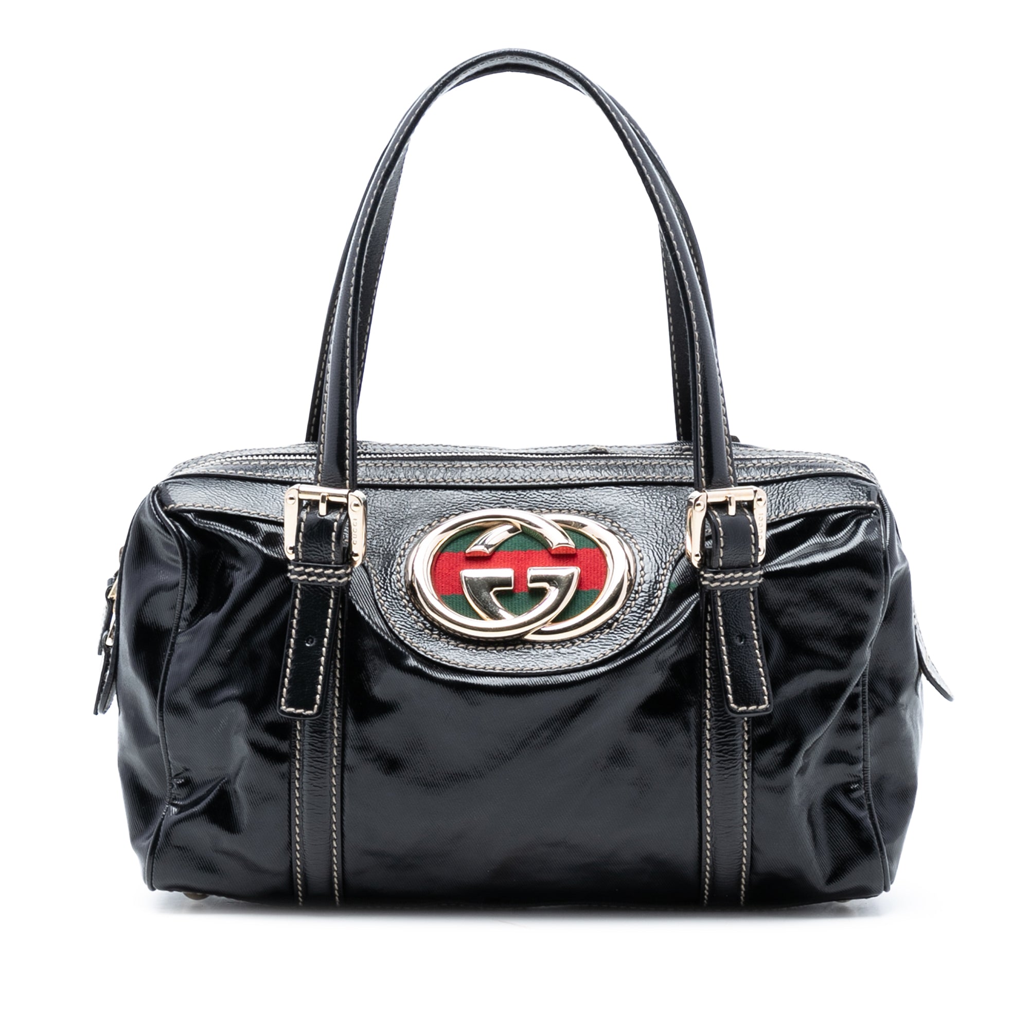 Elevate your everyday style with this iconic Gucci Coated Canvas Dialux Britt Boston Bag. This sophisticated boston bag features a luxurious coated canvas body adorned with the signature GG logo, complemented by sleek leather straps and metallic hardware accents.