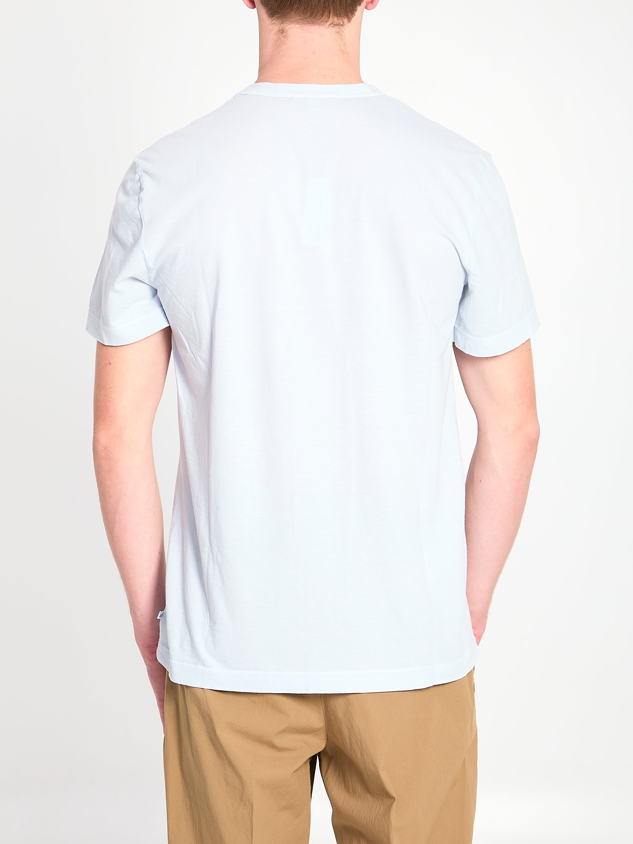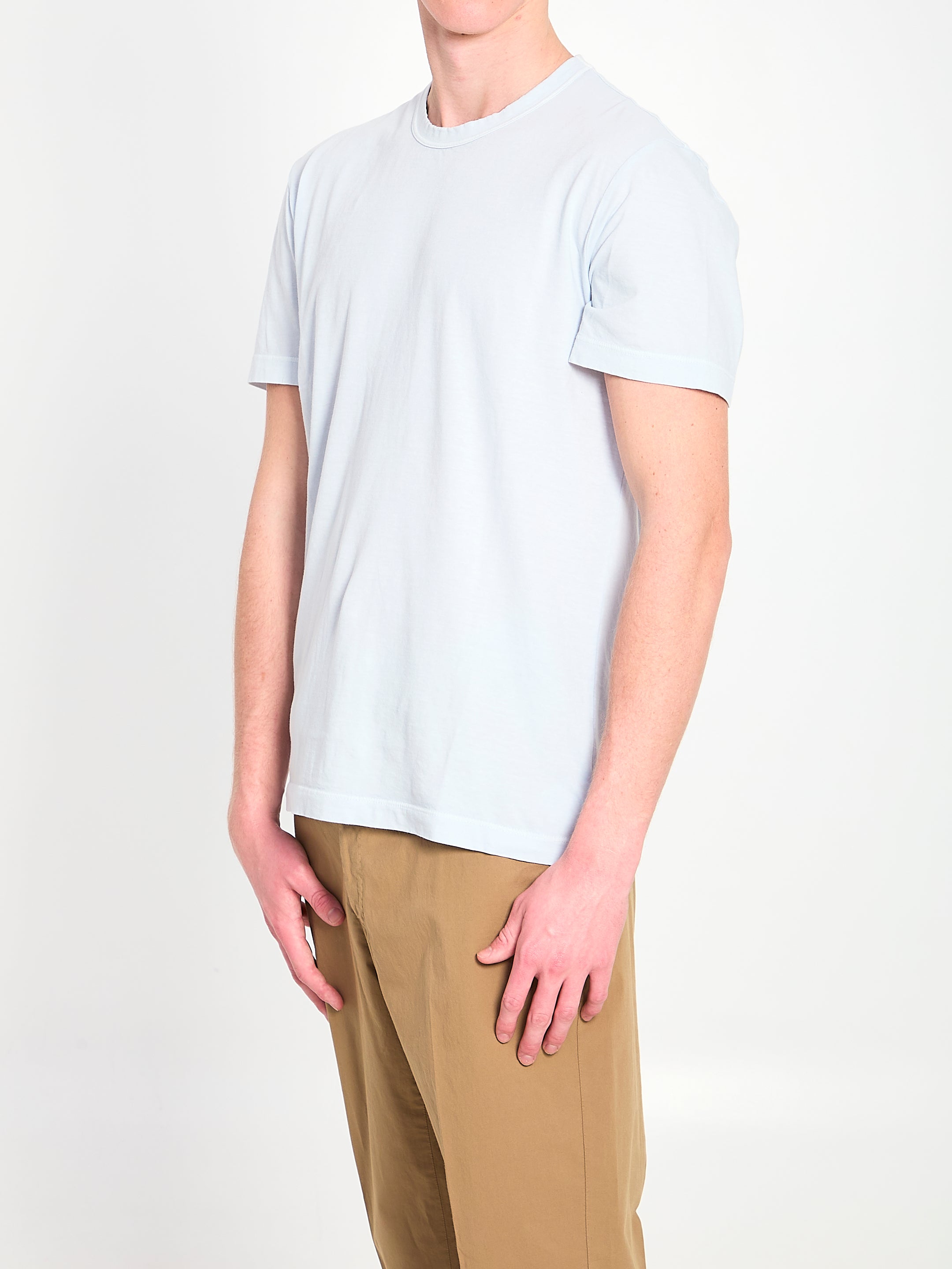 LIGHT SKY BLUE COMBED COTTON T-SHIRT. FEATURES A RIBBED CREW NECK, SHORT SLEEVES. REGULAR FIT.