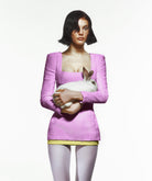 Corsetted Lilac Dress With Yellow Rosette And Hemline