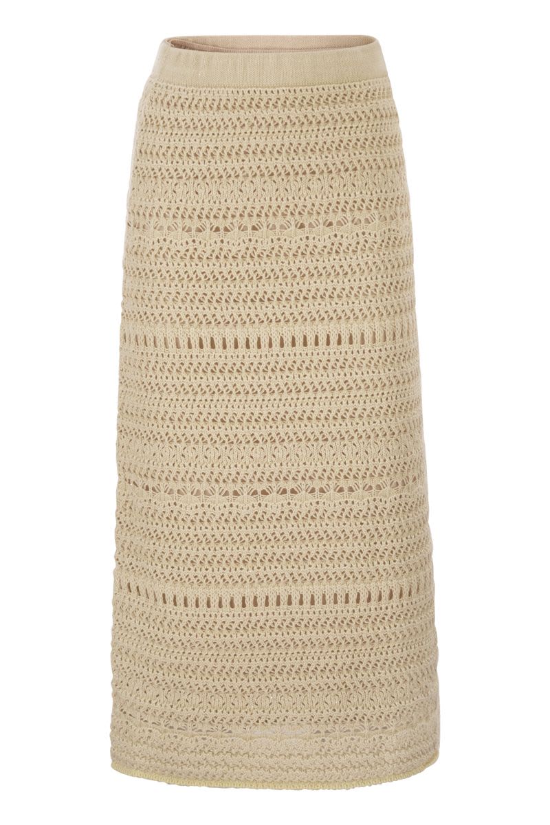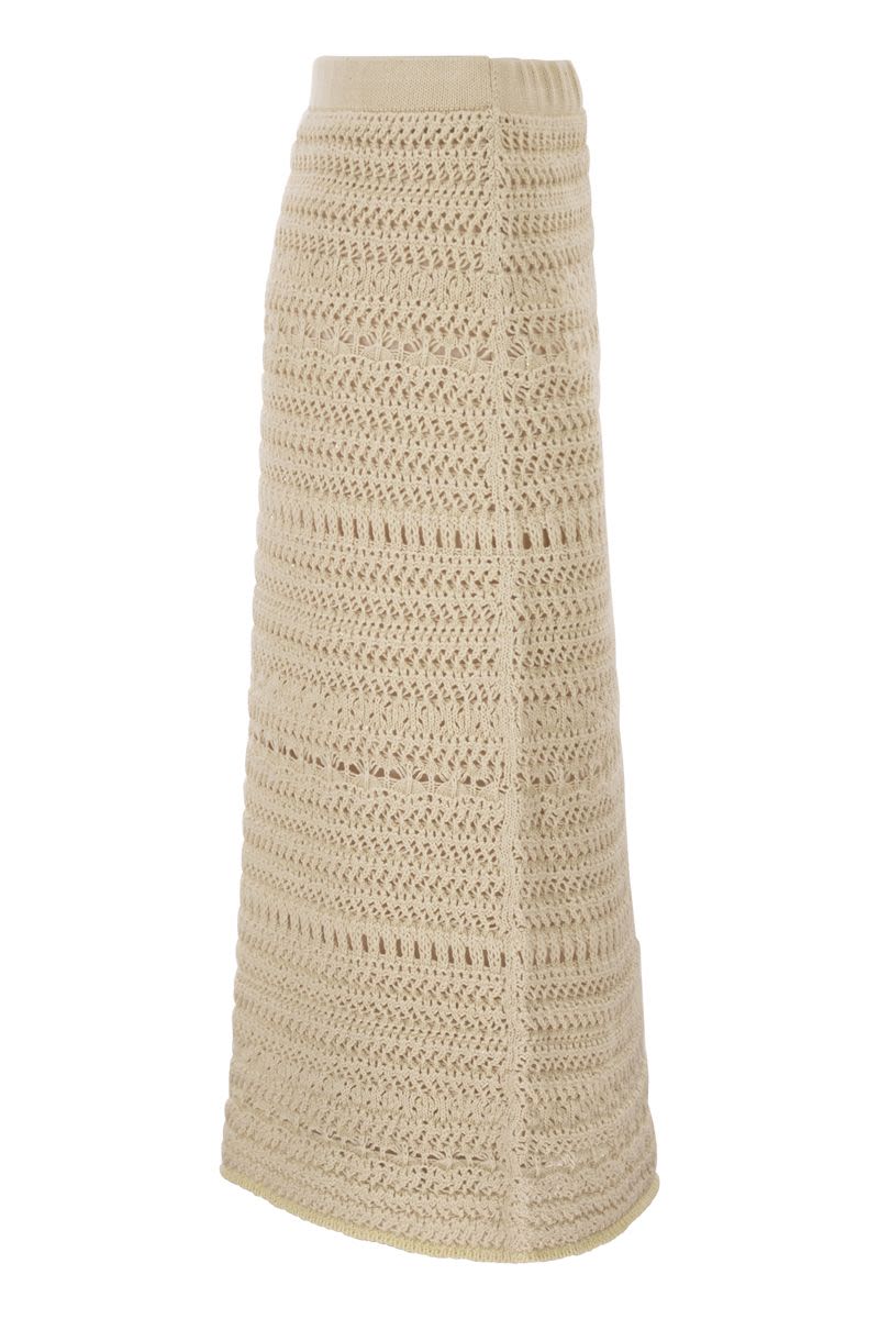 COTTON AND LINEN CROCHET MIDI PENCIL SKIRT