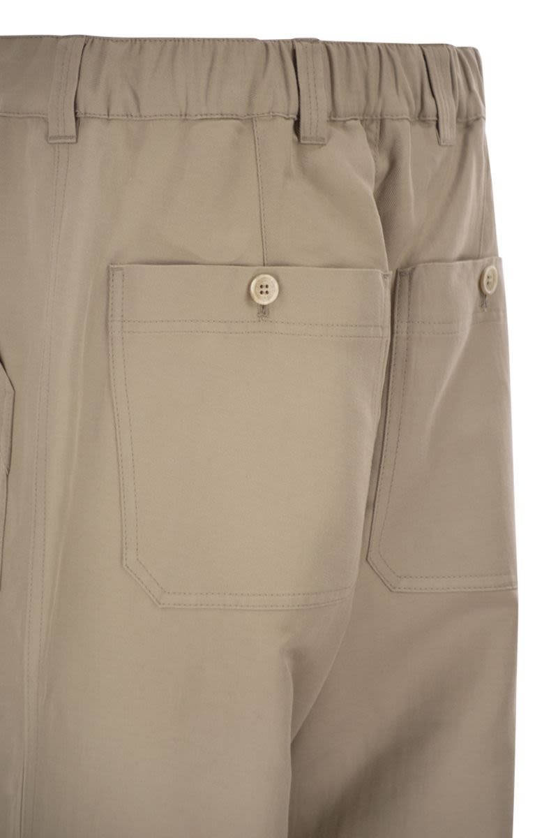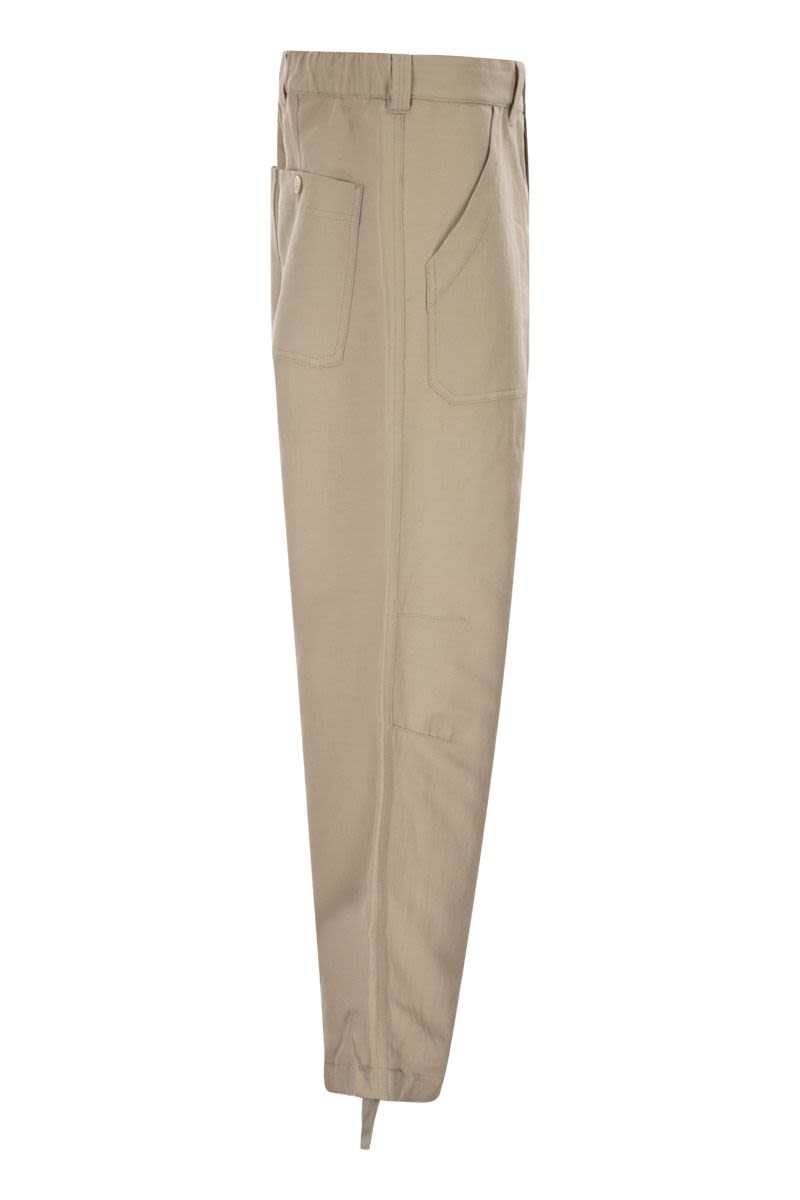 COTTON AND LINEN DRILL TROUSERS WITH PATCH POCKETS AND DRAWSTRING