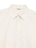 Elevate your everyday wardrobe with this sophisticated cotton and silk shirt from AURALEE. Featuring a timeless ivory base with subtle vertical stripes, this button-down combines luxurious fabrication with effortless style.