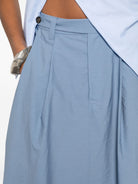 Style this timeless piece with a tucked-in blouse and heels for the office, or pair it with a simple tee and flats for a chic weekend look. The soft blue hue adds a fresh, refined touch to any wardrobe.