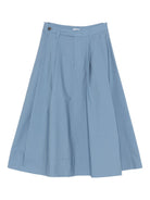 This elegant cotton blend skirt from Brunello Cucinelli features beautiful pleating throughout for a sophisticated, flowing silhouette. The midi length and classic A-line shape make it incredibly versatile for both professional and casual settings.