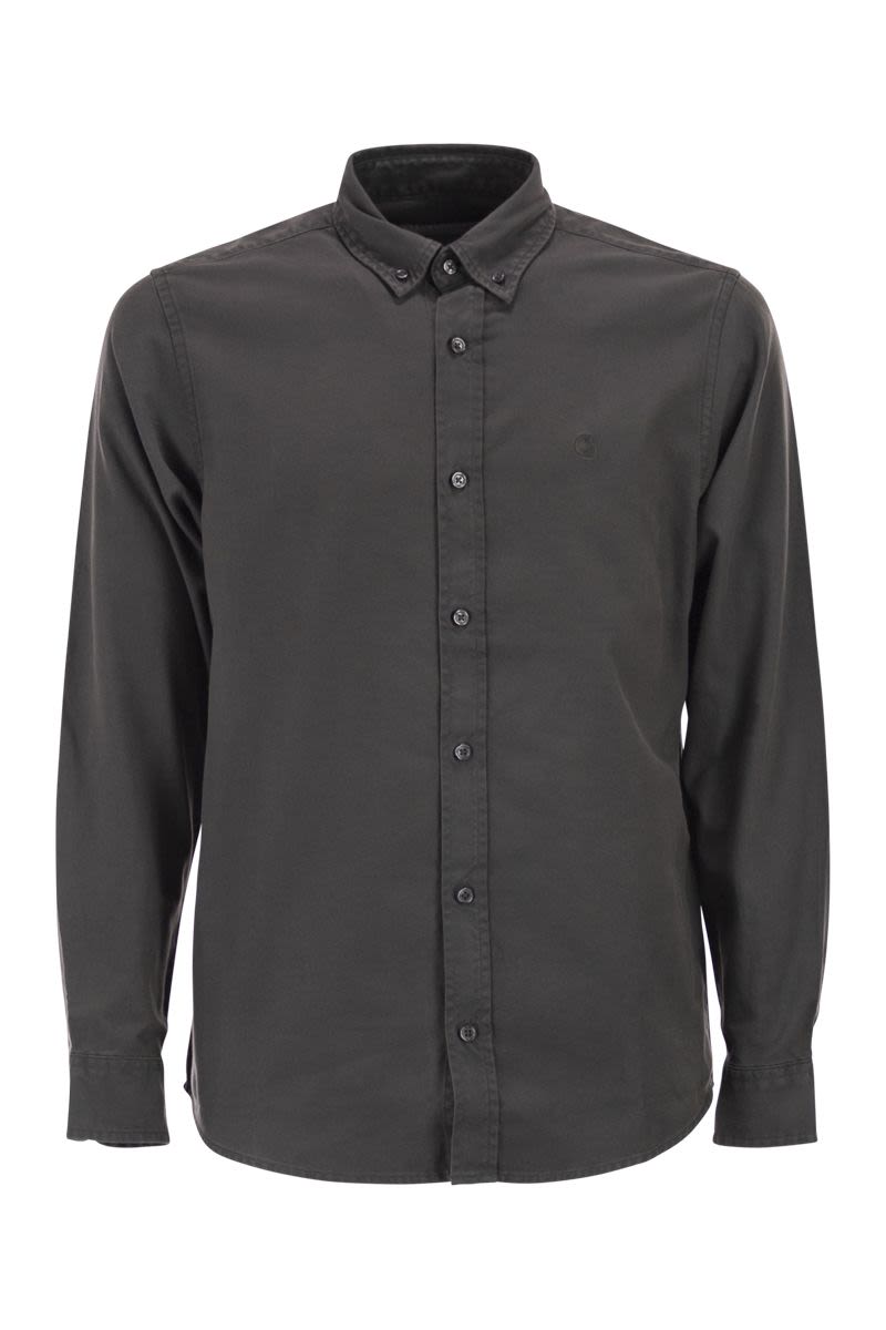 THE L/S BOLTON SHIRT IS A CLASSIC BUTTON-DOWN SHIRT MADE FROM GARMENT-DYED OXFORD COTTON. IT FEATURES A BUTTON-DOWN COLLAR AND CHEST POCKET WITH A DISCREET EMBROIDERED C LOGO. ROUNDED HEM. - REGULAR FIT - GARMENT DYED - BUTTON-DOWN COLLAR - EMBROIDERED LOGO - WIP LABEL DESIGNER ID: I030238 87GD