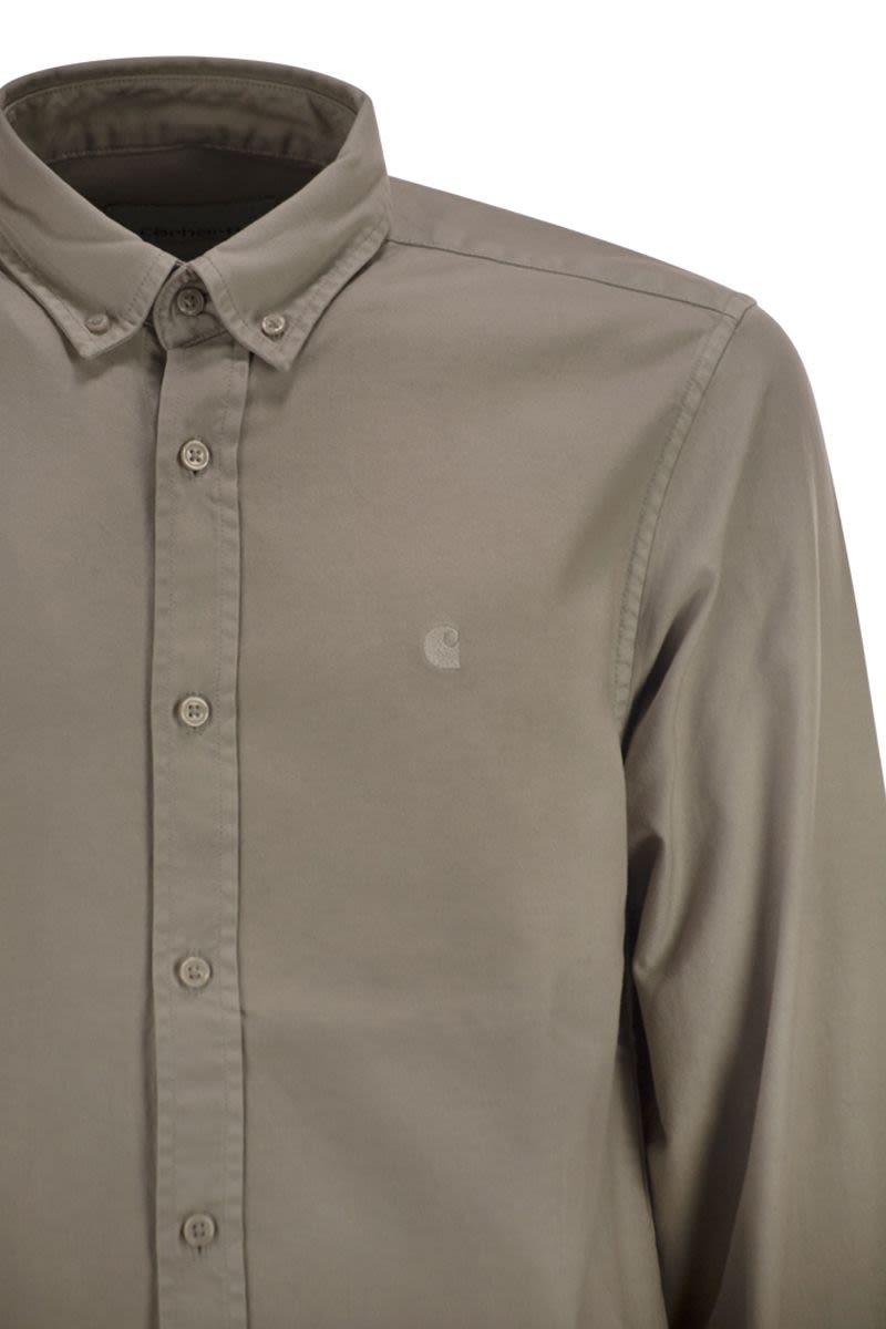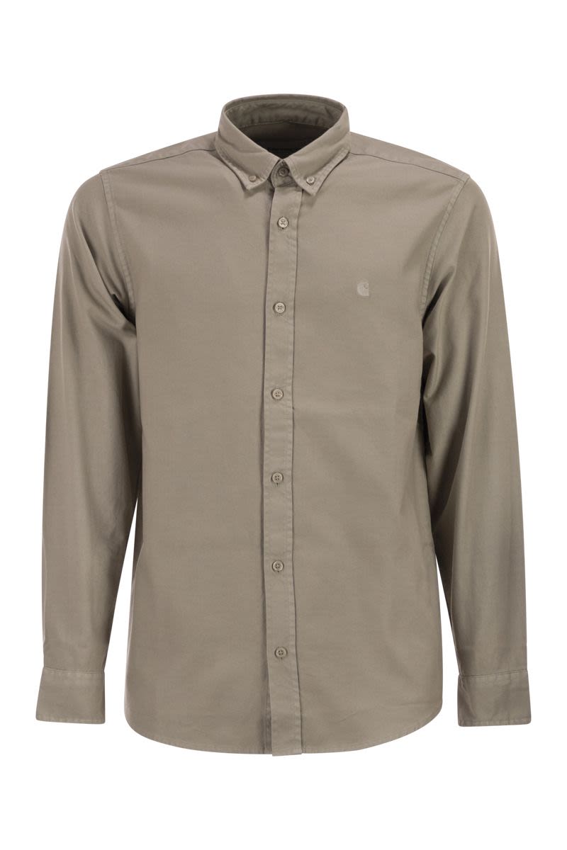THE L/S BOLTON SHIRT IS A CLASSIC BUTTON-DOWN SHIRT MADE FROM GARMENT-DYED OXFORD COTTON. IT FEATURES A BUTTON-DOWN COLLAR AND CHEST POCKET WITH A DISCREET EMBROIDERED C LOGO. ROUNDED HEM. - REGULAR FIT - GARMENT DYED - BUTTON-DOWN COLLAR - EMBROIDERED LOGO - WIP LABEL DESIGNER ID: I030238 3GEGD