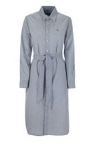 MADE OF COTTON, THIS CHEMISIER HAS A STRAIGHT, ELONGATED CUT AND IS EMBELLISHED WITH A BELT IN THE SAME FABRIC AT THE WAIST. THE EMBROIDERED PONY EMBELLISHES THE CHEST. - STRAIGHT CUT - LENGTH TO BELOW THE KNEE - POINTED COLLAR - BUTTON-DOWN COLLAR - LONG SLEEVES WITH BUTTON CUFFS - AMERICAN-STYLE SIDE POCKETS - BELT IN THE SAME FABRIC INCLUDED - HEMMED FLAP WITH SIDE SLITS - BACK YOKE WITH CANNON PLEATS - EXCLUSIVE EMBROIDERED PONY ON THE LEFT CHEST SIDE DESIGNER ID: 211963464 001