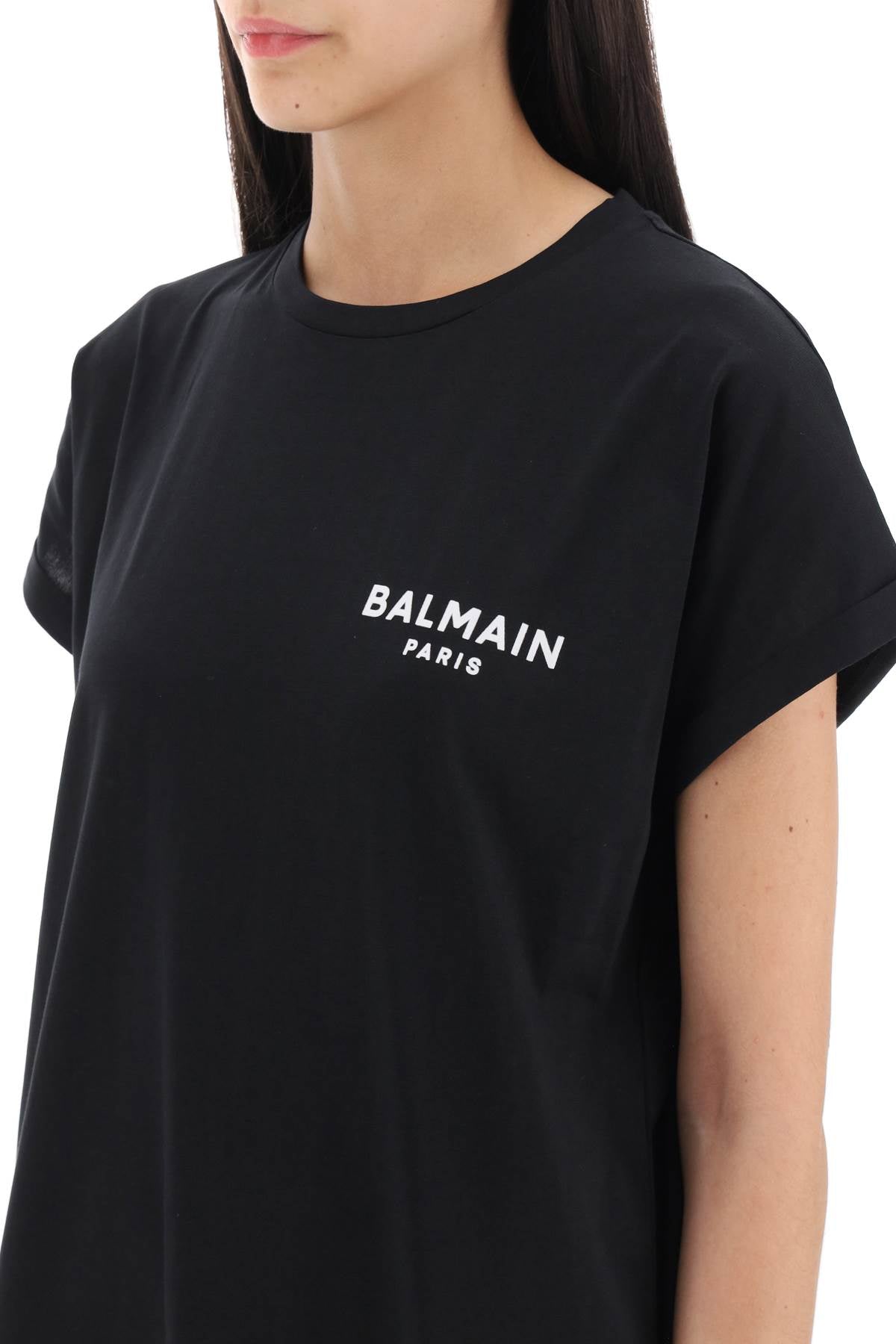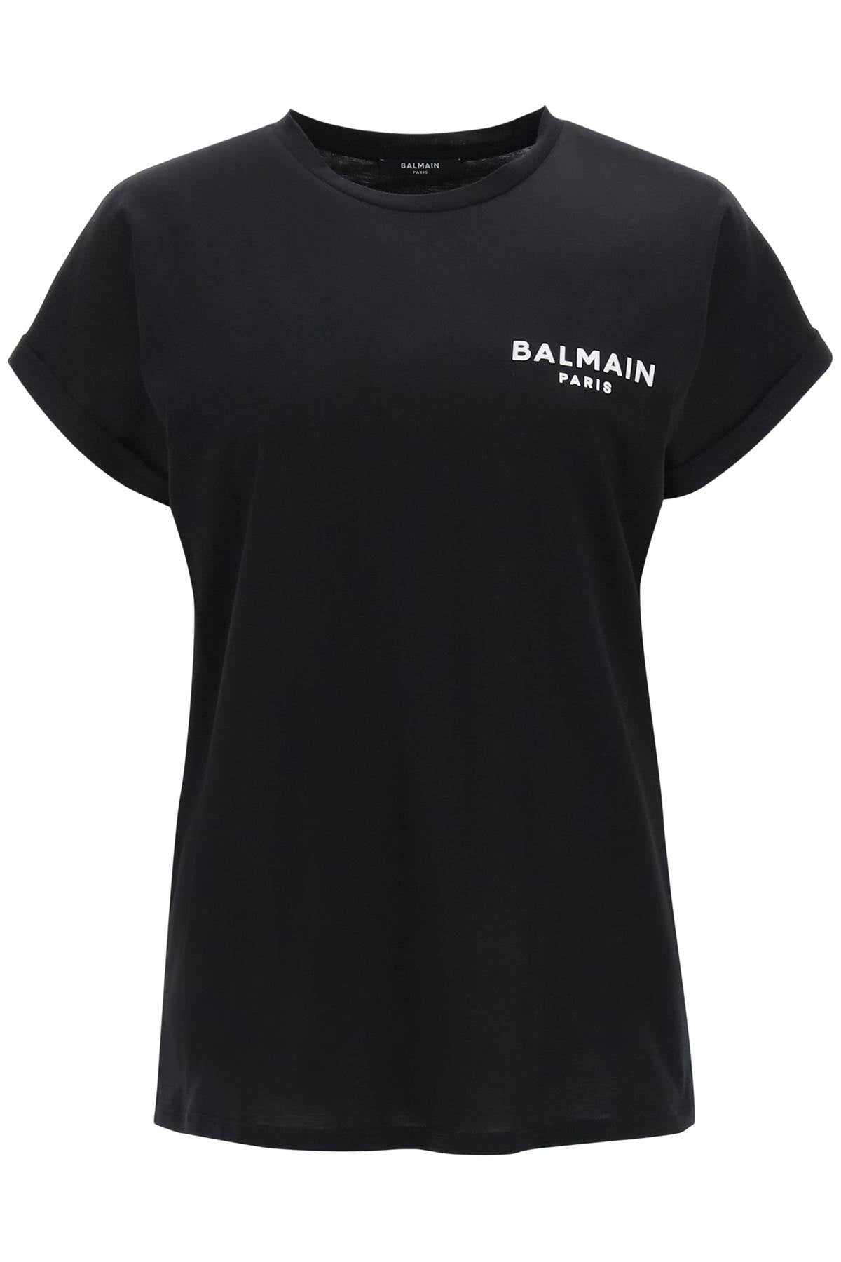 Elevate your everyday wardrobe with this luxurious cotton crew-neck t-shirt from Balmain. Crafted from 100% premium cotton, this classic black tee features the iconic Balmain Paris logo in a sophisticated velvet effect print on the chest, adding a touch of Parisian elegance to your casual looks.