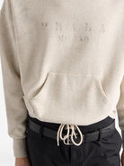 Elevate your off-duty wardrobe with this luxurious Cotton Fleece Hoodie from Prada. Crafted from premium cotton fleece in a sophisticated neutral tone, this hoodie features a relaxed, oversized silhouette with a classic hood, long sleeves, and convenient kangaroo pocket.