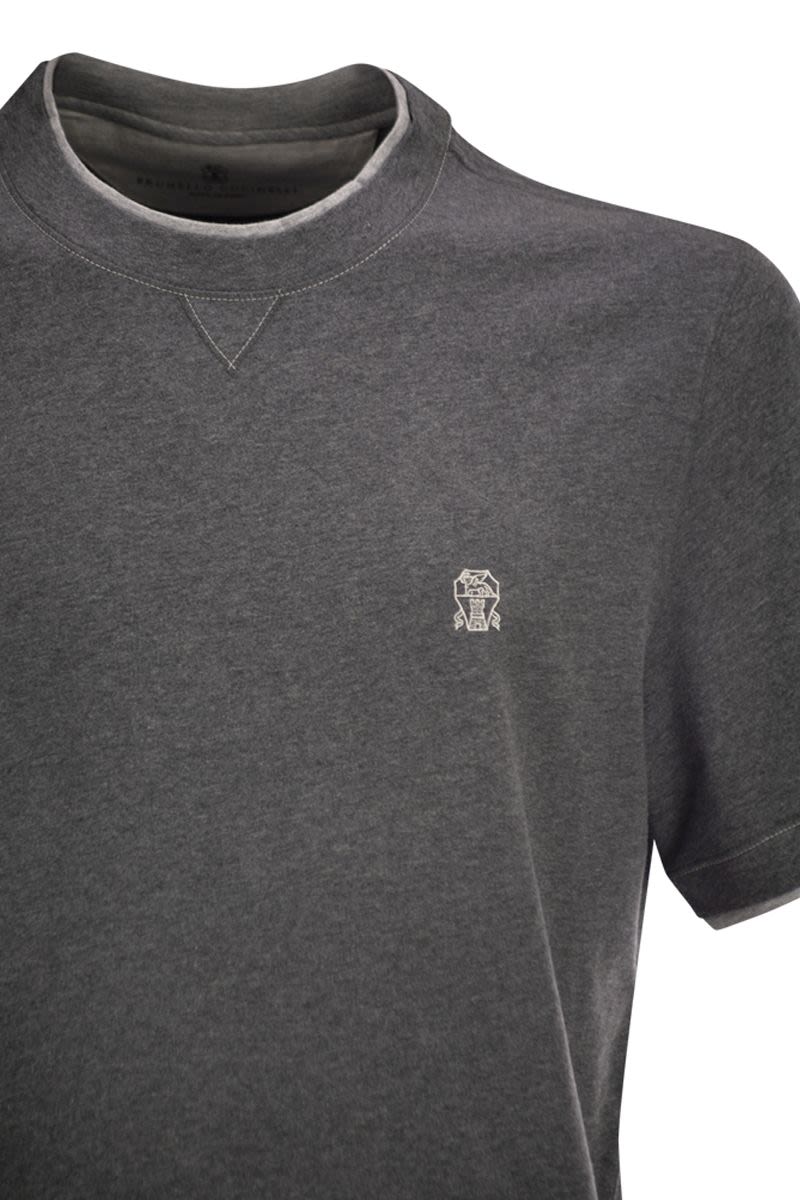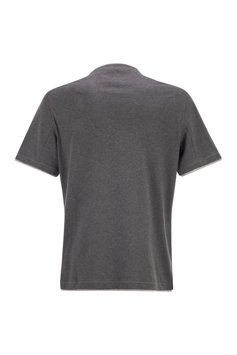 REFINED DETAILS ENHANCE THIS CLASSIC CREW NECK T-SHIRT IN SOFT COTTON JERSEY FROM THE TRAVELWEAR LINE, DESIGNED FOR RELAXATION AND LEISURE. CONTRASTING INSERTS CREATE AN OVERLAPPING EFFECT THAT HIGHLIGHTS THE CREW NECK, SLEEVES AND HEM, WHILE THE SOLOMEO CREST ON THE CHEST RECALLS THE BRAND'S ORIGINS AND VALUES. THE FIT OFFERS REGULAR VOLUMES. THE QUALITY OF NATURAL COTTON ENRICHES THE SOFT JERSEY, A LIGHTWEIGHT FABRIC WITH A SMOOTH, FLOWING FEEL. - CREW NECK WITH TRIANGLE DETAIL - SLEEVES WITH FLATLOCK SEAMS - HEM WITH FLATLOCK STITCHING DESIGNER ID: M0B137451G CI900