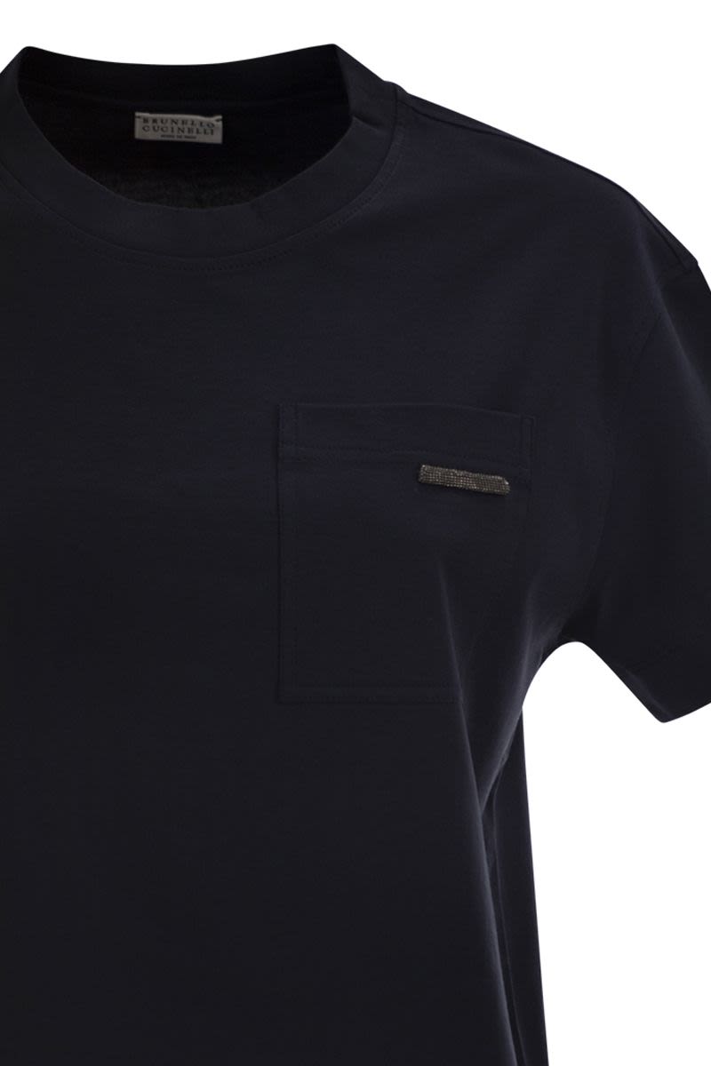 A SPORTY ATTITUDE AND ICONIC ELEMENTS DEFINE THE STYLE OF THIS COTTON JERSEY T-SHIRT. THE MODEL FEATURES A CLASSIC CREW NECK AND A REGULAR FIT. PRECIOUS EMBROIDERY EMBELLISHES THE CHEST POCKET, ADDING A FEMININE TOUCH OF LIGHT IN PURE BRUNELLO CUCINELLI STYLE. THE SEARCH FOR THE BEST MATERIALS ELEVATES THE SPORTY FEEL OF PURE COTTON JERSEY, INSPIRED BY THE MEN'S WARDROBE. THE FABRIC IS COMFORTABLE, LIGHTWEIGHT AND EXTREMELY PLEASANT TO WEAR, PERFECT FOR ANY SEASON. - ROUND NECK - PATCH POCKET ON THE CHEST - NICKEL-FREE METAL DECORATION DESIGNER ID: M0T81EC710 C4224