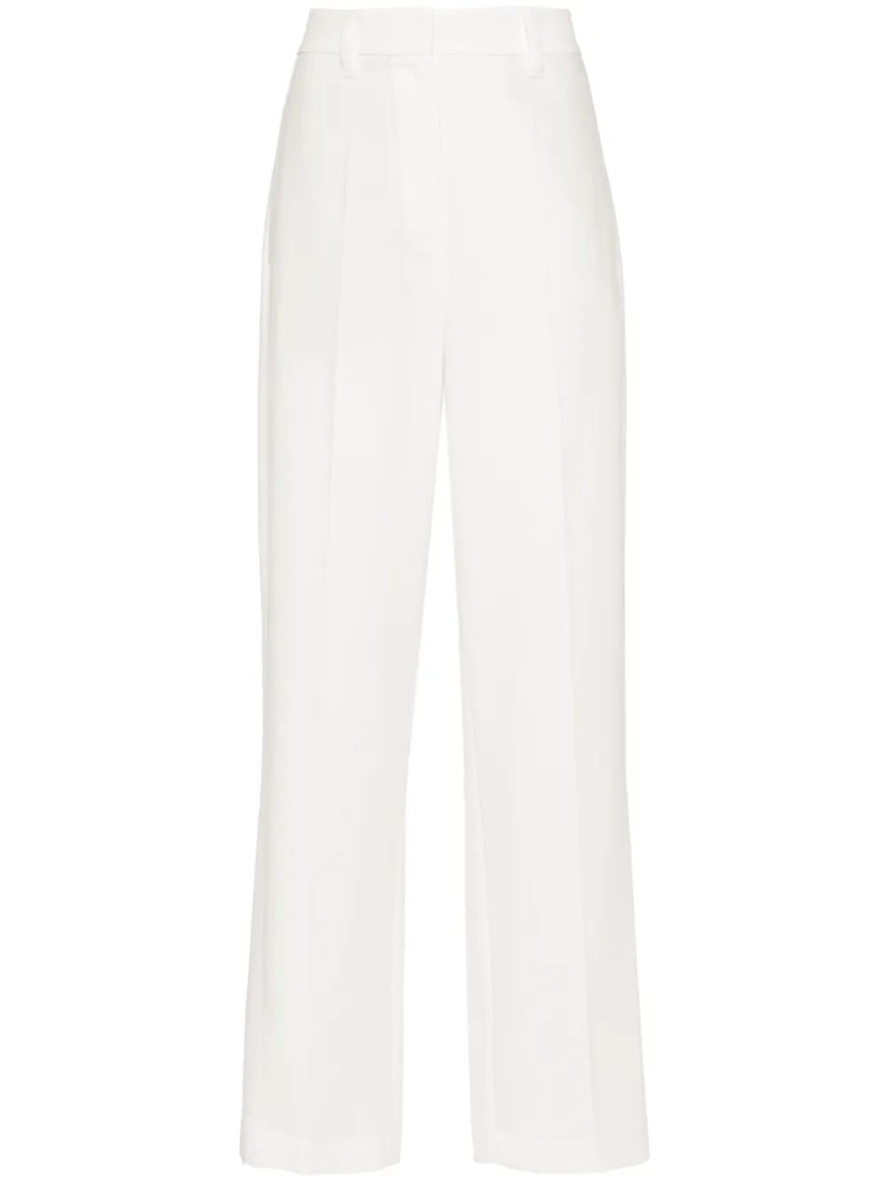 The pleated design offers both structure and comfort, while the crisp white hue makes them incredibly versatile for any season. Style them with a tucked-in blouse and heels for the office, or pair with a relaxed knit and loafers for an elevated casual look.