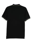 Crafted from premium cotton with silk and nylon accents, this black polo features contrasting trim along the collar and cuffs for a refined touch.