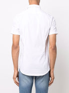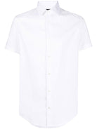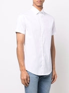 WHITE COTTON CLASSIC COLLAR FRONT BUTTON FASTENING SHORT SLEEVES CURVED HEM