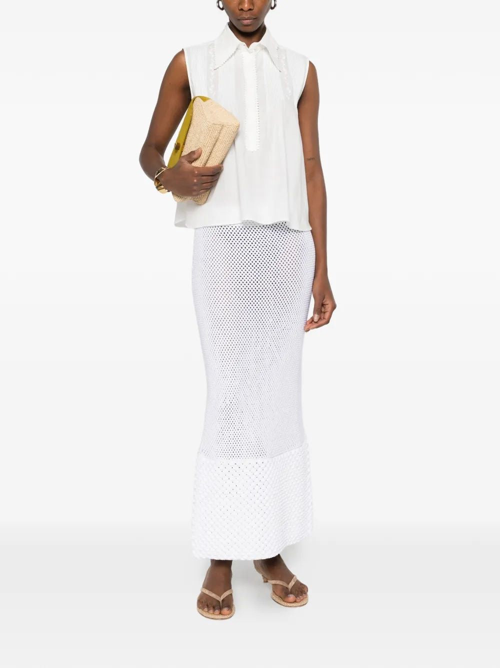 This versatile piece seamlessly transitions from desk to dinner, making it an essential addition to any modern woman's wardrobe. The pristine white hue and impeccable Italian craftsmanship exemplify Ermanno Scervino's commitment to timeless elegance.