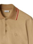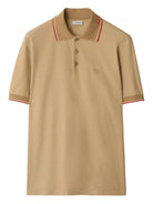 BURBERRY COTTON POLO SHIRT NEUTRALS BEIGE FRONT BUTTON PLACKET SHORT SLEEVES STRAIGHT HEM EMBROIDERED LOGO ON CHEST COTTON POLO SHIRTS CLOTHING MEN