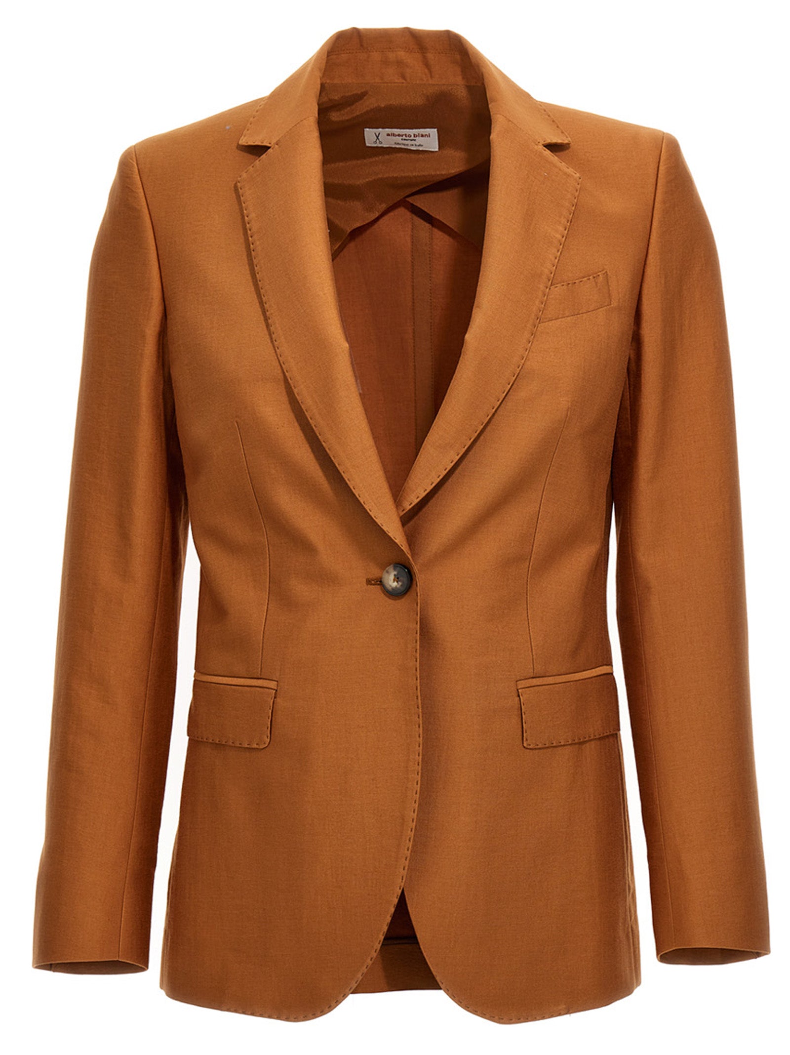 Elevate your professional wardrobe with this sophisticated single-breasted blazer from Alberto Biani. Crafted from premium cotton, this versatile jacket features a tailored silhouette with classic notch lapels, functional front pockets, and a refined button closure.
