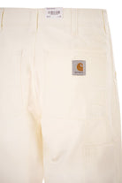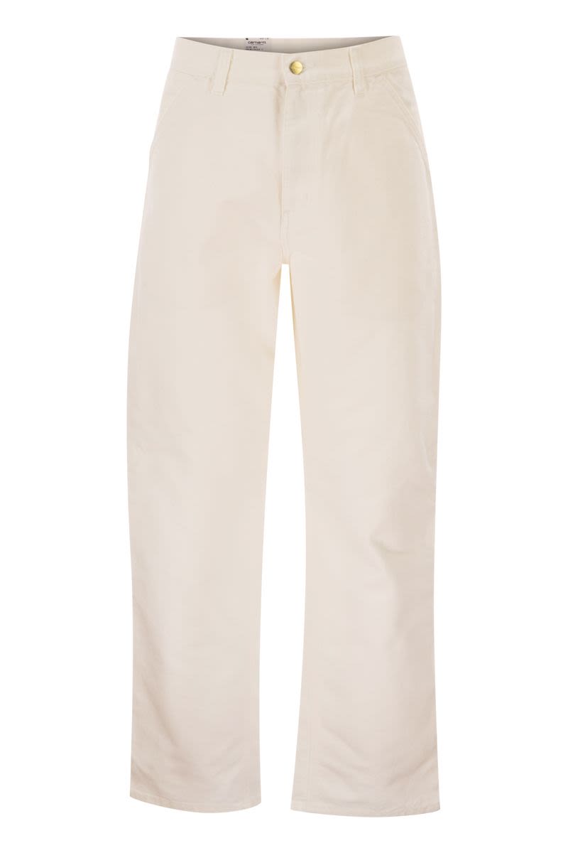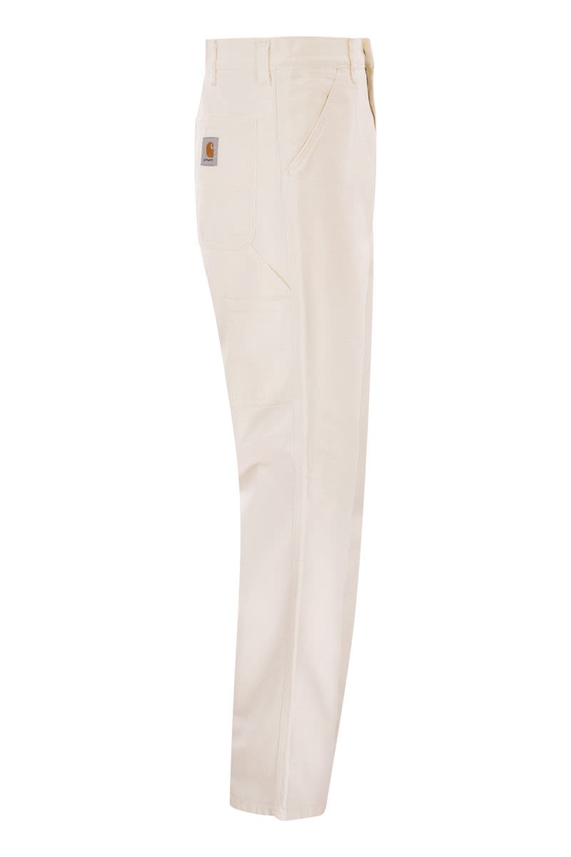 THE SINGLE KNEE TROUSERS ARE INSPIRED BY CLASSIC WORK TROUSERS AND ARE MADE FROM DURABLE 340 GRAM DEARBORN CANVAS, WHICH SOFTENS SLOWLY WITH USE OVER TIME. THE MODEL FEATURES A COMFORTABLE FIT, STRAIGHT LEG AND REGULAR WAIST. BAR TACKING AT HIGH-WEAR POINTS ENSURES DURABILITY. TOOL POCKETS AND A HAMMER LOOP FURTHER EMPHASISE THE FUNCTIONAL CHARACTER OF THE DESIGN. - RELAXED STRAIGHT FIT, REGULAR WAIST - TRIPLE STITCHING - BAR TACKING AT HIGH-WEAR POINTS - ZIP FLY - SQUARE LABEL DESIGNER ID: I031497 D602