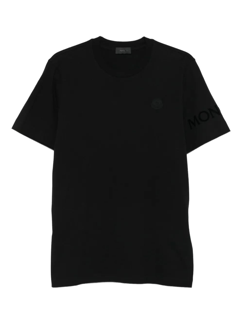 T-SHIRT IN BLACK COTTON.STRAIGHT CUT.ROUND COLLAR.FELT LOGO ON FRONT.EMBROIDERED LOGO ON SLEEVE.