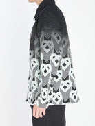 BLACK JACQUARD SHIRT IN A COTTON AND POLYESTER BLEND, FEATURING A CONTRASTING WHITE PATTERN. DESIGNED WITH A POINTED COLLAR, FRONT BUTTON CLOSURE, CHEST POCKET WITH ZIP, BUTTONED CUFFS, AND A STRAIGHT HEM. RELAXED FIT.