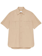 The short sleeves and boxy silhouette make it perfect for warm-weather styling, while the neutral beige tone ensures versatile pairing options. Wear it buttoned up with tailored trousers for a refined casual look, or layer it open over a tee with denim for effortless off-duty style.